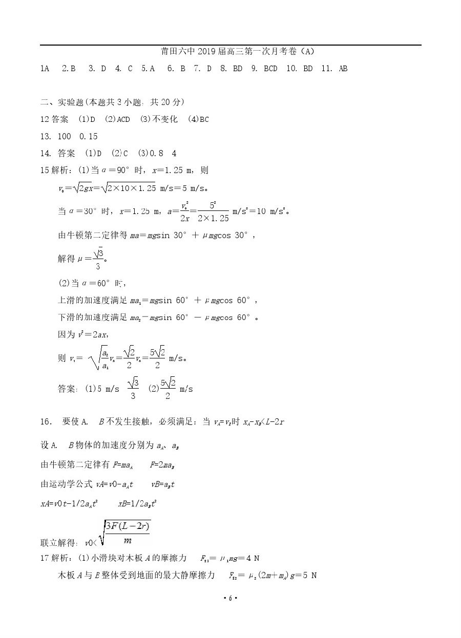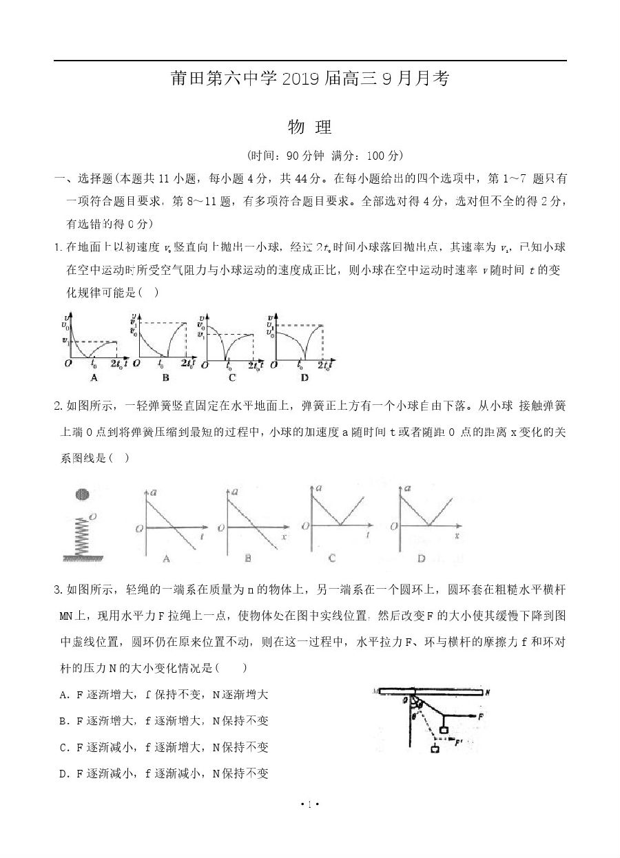 【摘要】下面閩州教育小編整理了福建省2019年莆田第六中學(xué)高三9月月考的試題,供大家參考,更多高考信息可關(guān)注閩州教育高考資訊專欄。