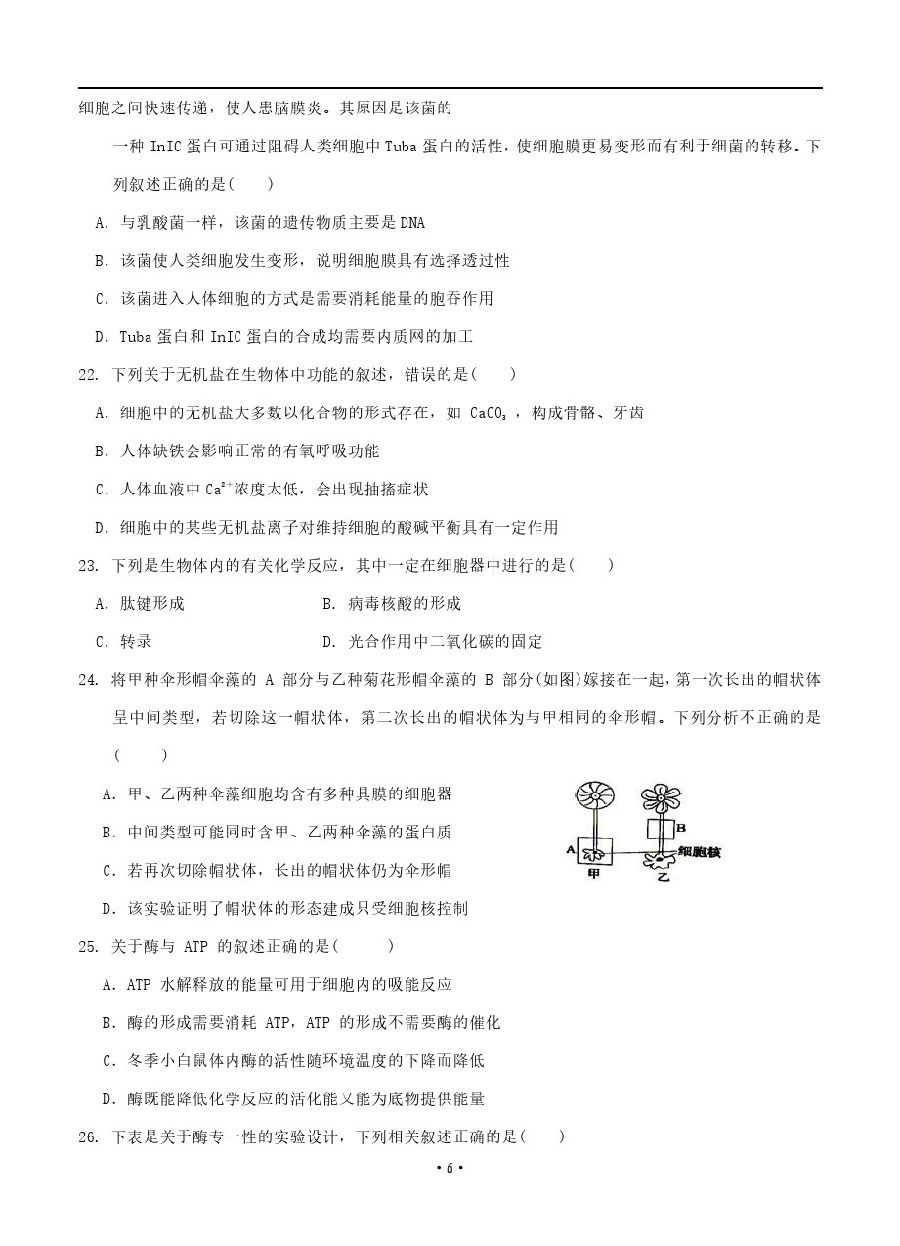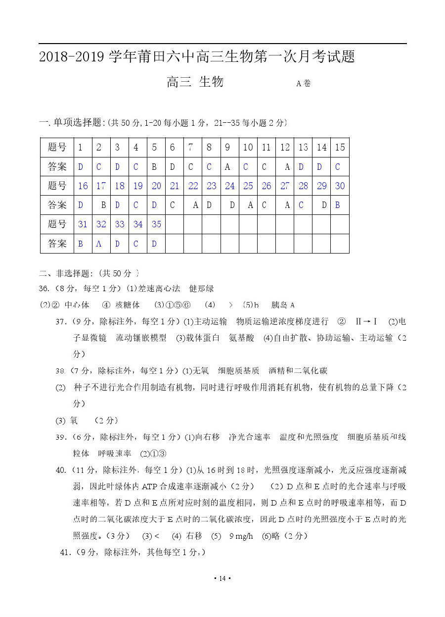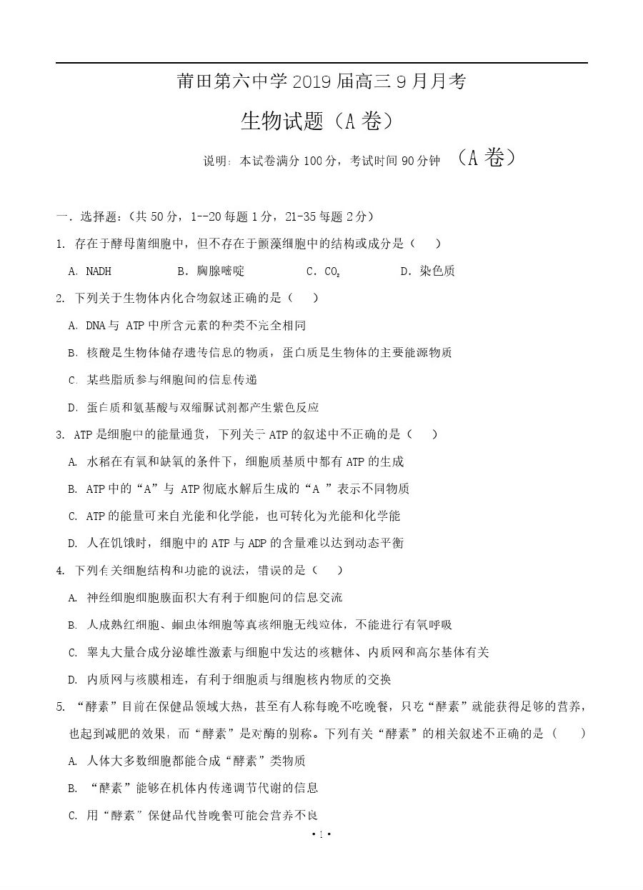 【摘要】為了同學(xué)們更好的迎接2019年的高考,下面閩州教育小編整理了福建省2019莆田第六中學(xué)高三9月月考生物試題(A卷)及參考答案,考生們可以針對(duì)題目來更好的復(fù)習(xí)哦,更多高考信息可關(guān)注閩州教育高考資訊專欄。