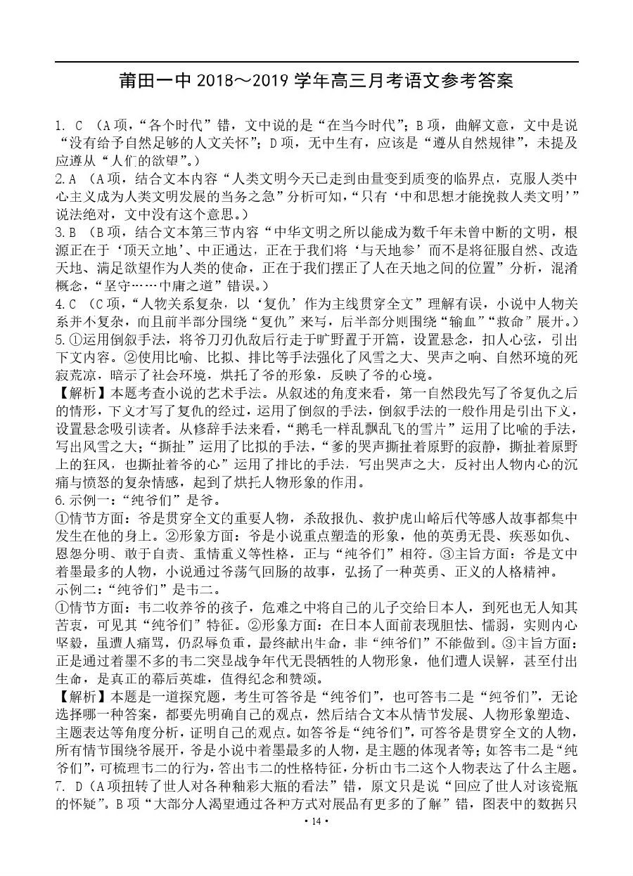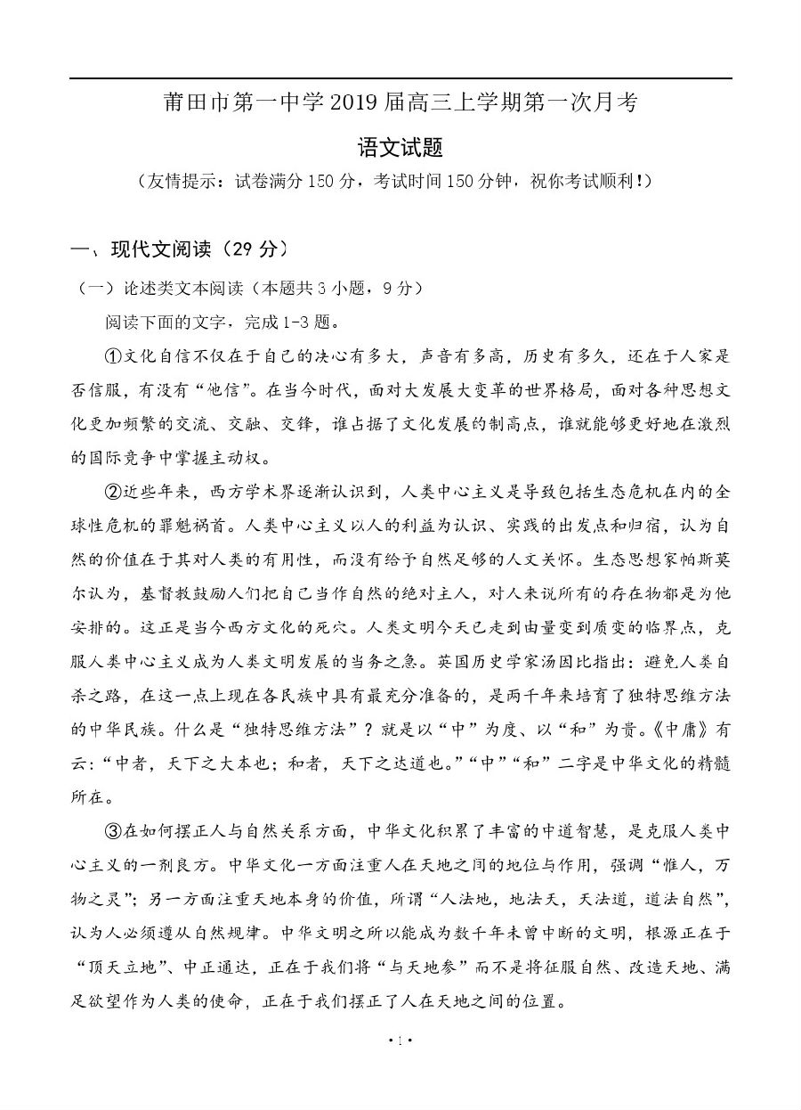 【摘要】莆田一中2019高三上第一次月考語(yǔ)文試題及參考答案!更多高考信息可關(guān)注閩州教育高考資訊專欄。