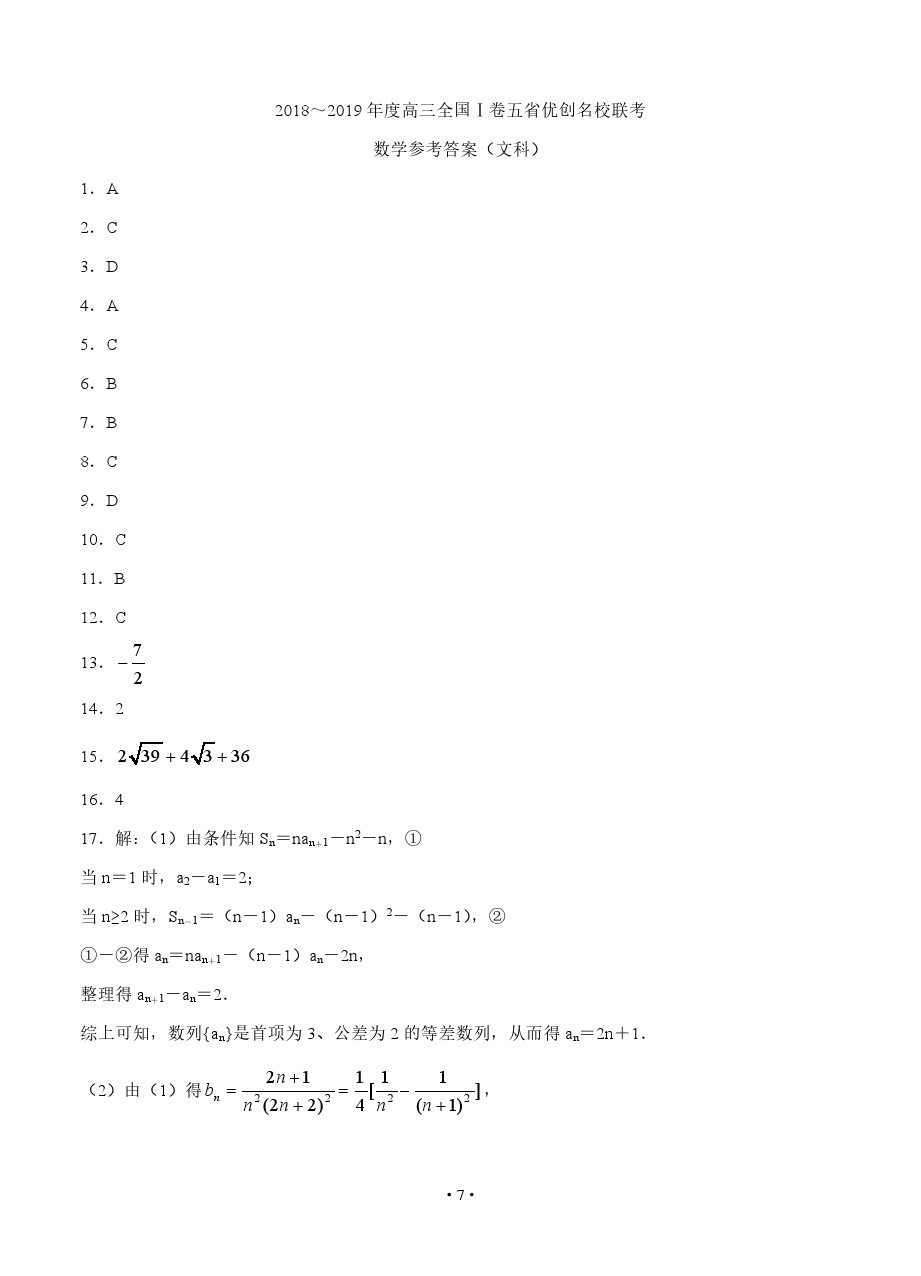 【摘要】2018-2019高三全國(guó)I卷五省優(yōu)創(chuàng)名校聯(lián)考文數(shù)試題及參考答案!更多高考信息可關(guān)注閩州教育高考資訊專(zhuān)欄。