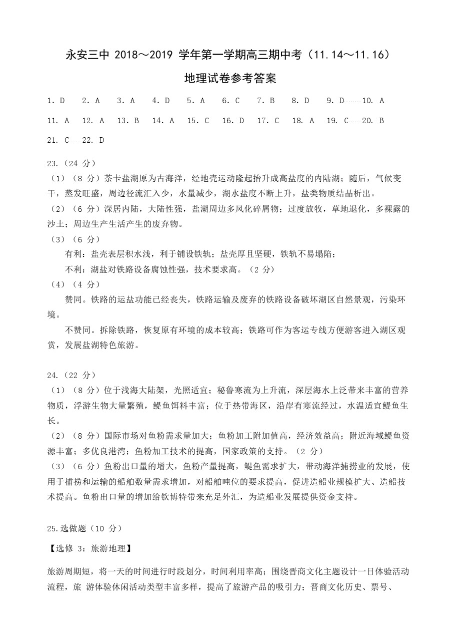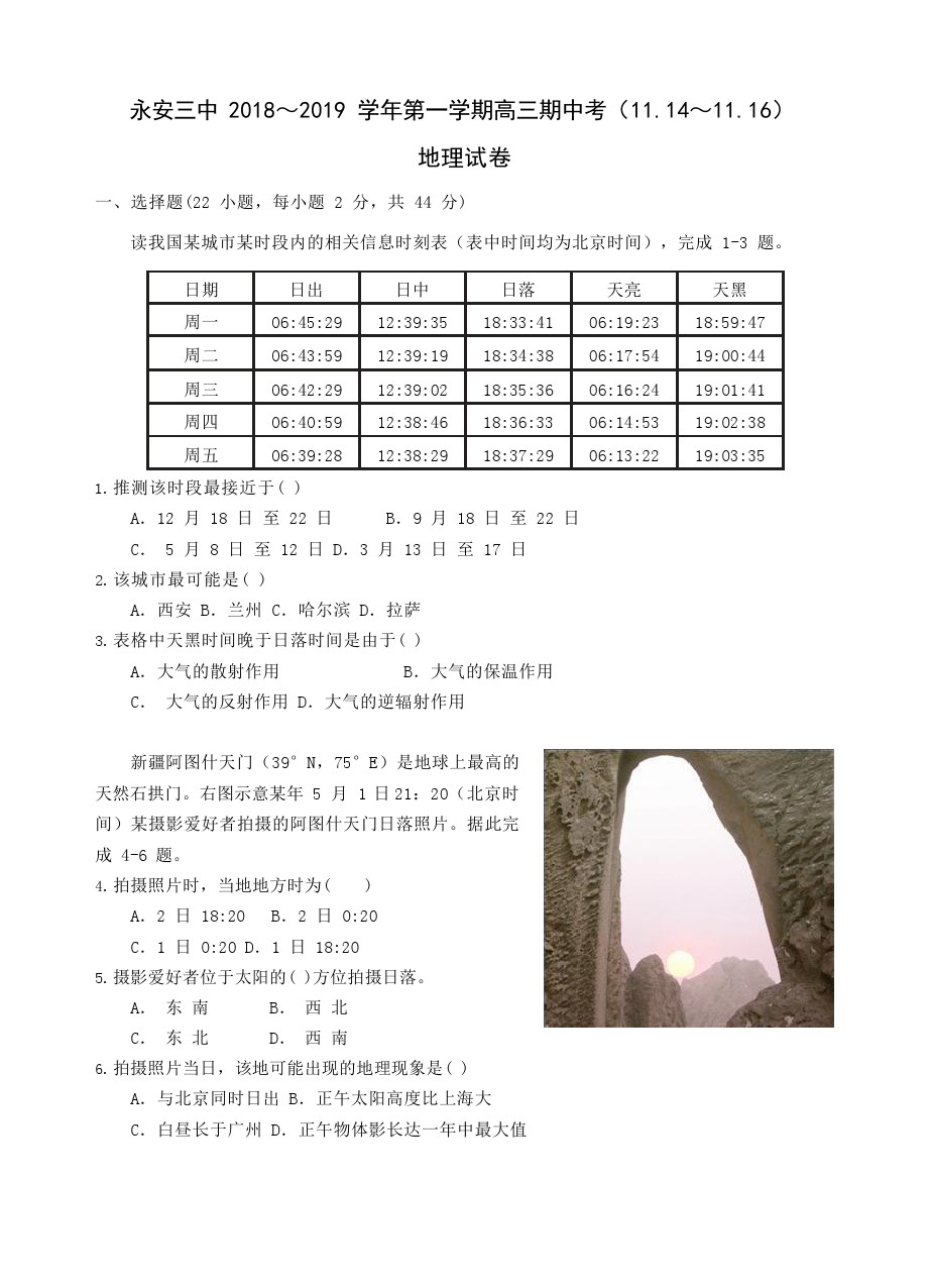 【摘要】福建省永安市第三中學(xué)2019屆高三上學(xué)期期中考試地理試題(無答案)!更多高考信息可關(guān)注閩州教育高考資訊專欄。