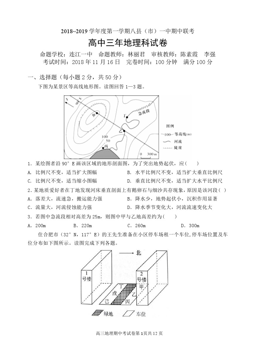 【摘要】福建省福州市八縣一中2018-2019學(xué)年高三年上學(xué)期期中考地理試題及答案!更多高考信息可關(guān)注閩州教育高考資訊專欄。