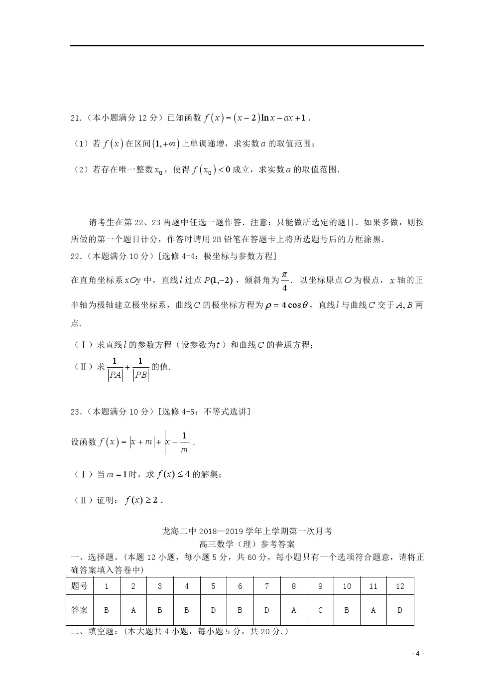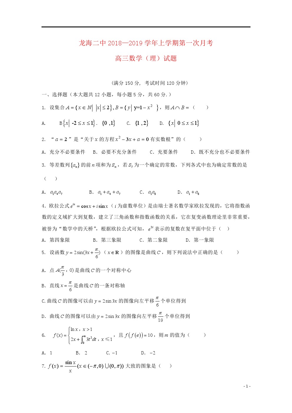 【摘要】福建省龍海市第二中學2019屆高三數學上學期第一次月考試題及答案!更多高考信息可關注閩州教育高考資訊專欄。