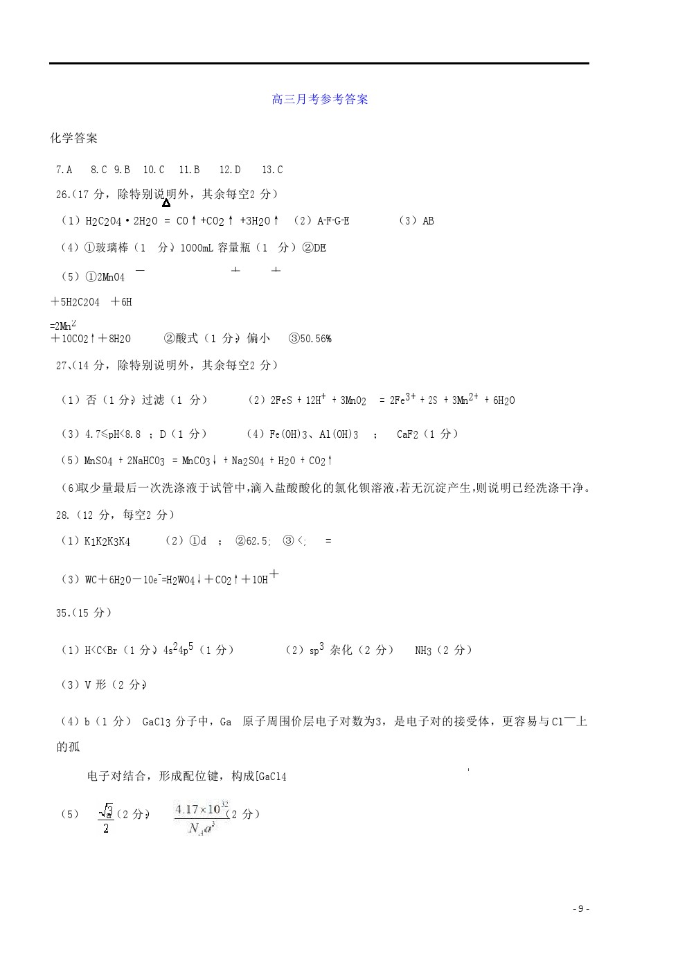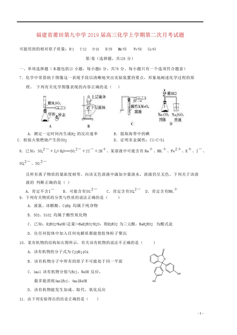 【摘要】福建省莆田第九中學(xué)2019屆高三化學(xué)上學(xué)期第二次月考試題及答案,供大家參考,更多高考信息可關(guān)注閩州教育高考資訊專欄。