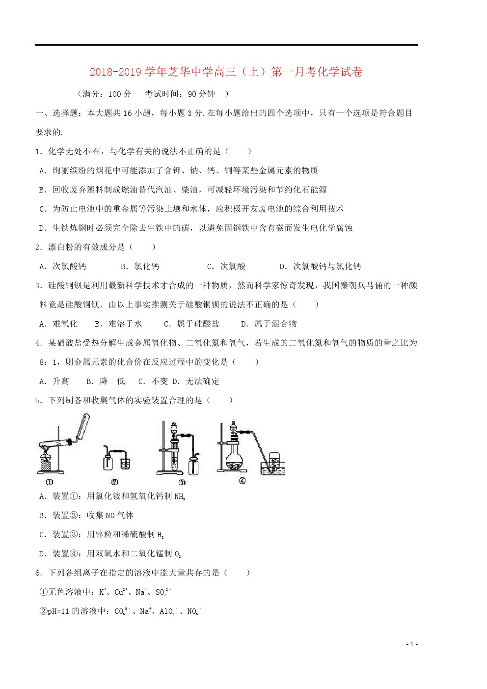 【摘要】福建省建甌市芝華中學(xué)2019屆高三化學(xué)上學(xué)期第一次月考試題。更多高考信息可關(guān)注閩州教育高考資訊專欄。