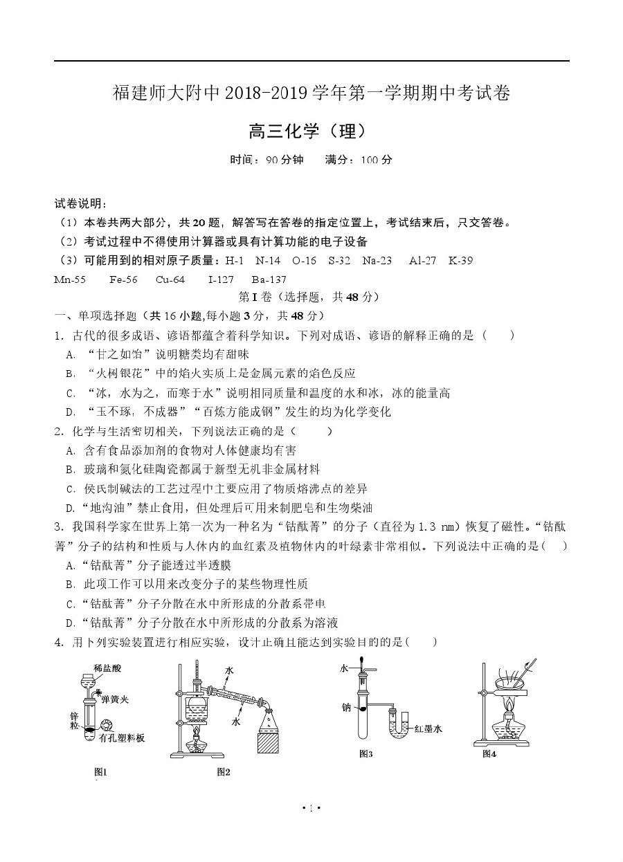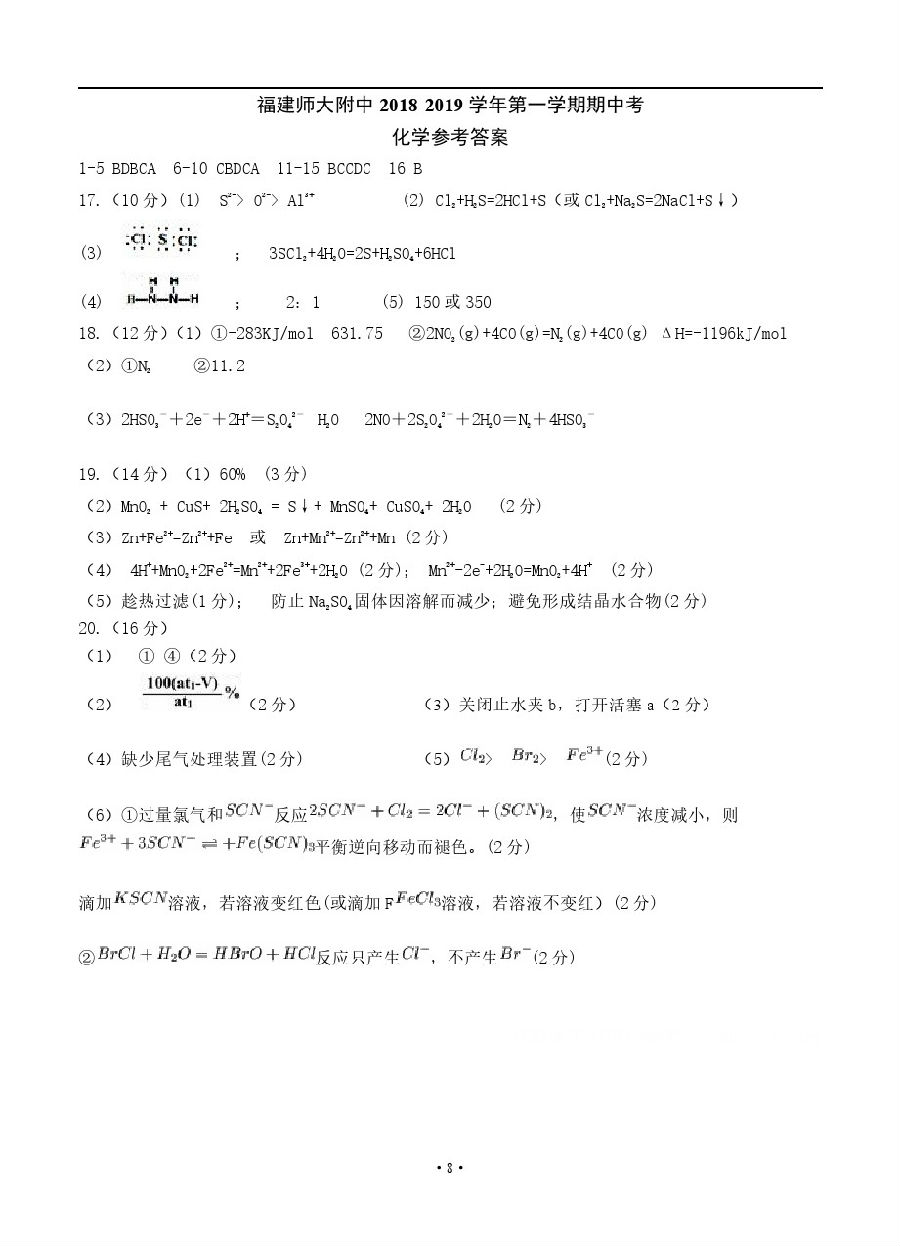 【摘要】2019福師大附中高三上學(xué)期期中考化學(xué)試題及參考答案!更多高考信息可關(guān)注閩州教育高考資訊專欄。