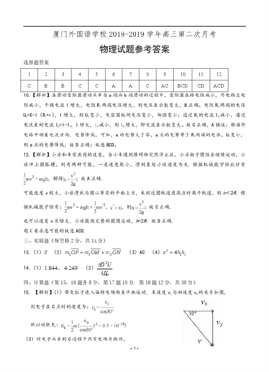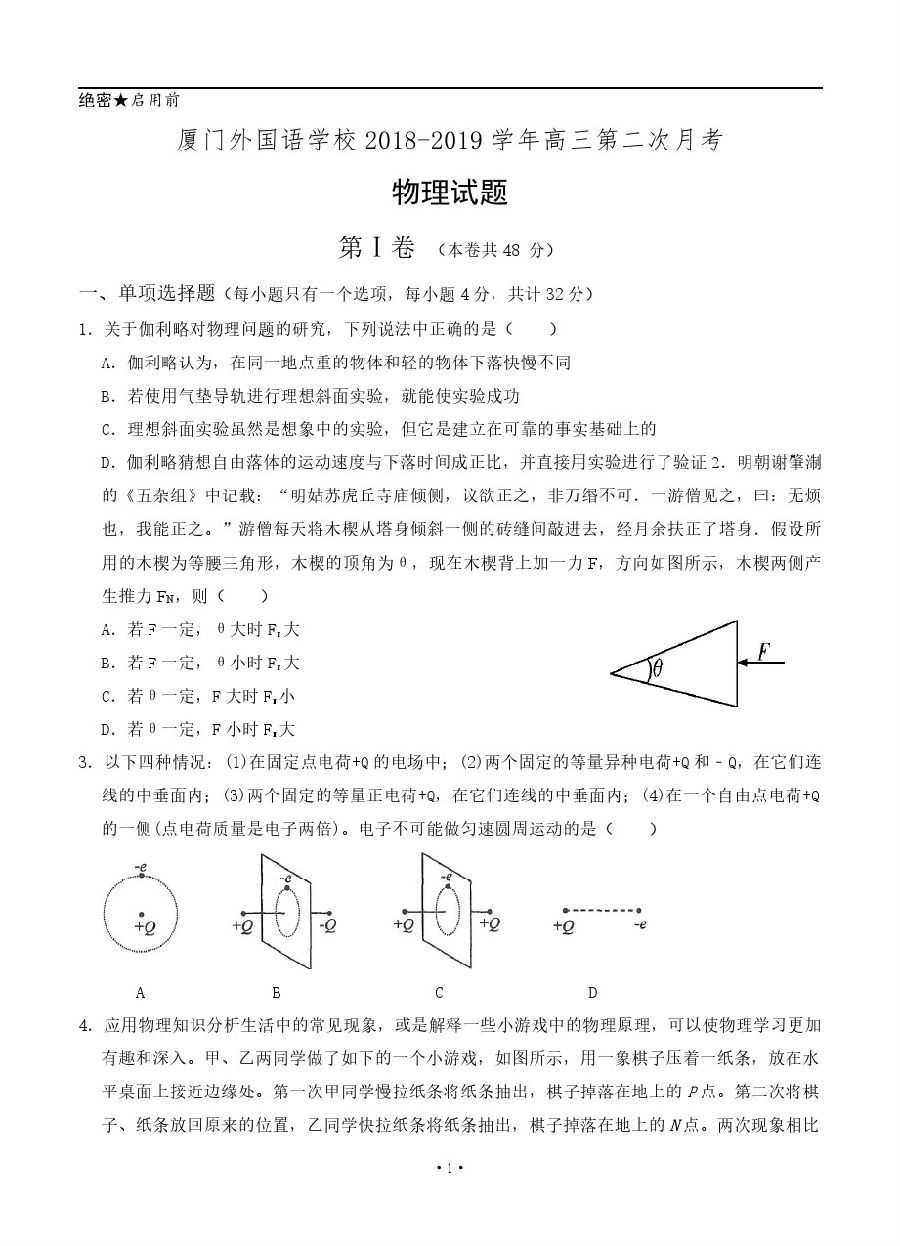 【摘要】廈門(mén)外國(guó)語(yǔ)學(xué)校2019屆高三11月月考物理試卷及參考答案!更多高考信息可關(guān)注閩州教育高考資訊專欄。