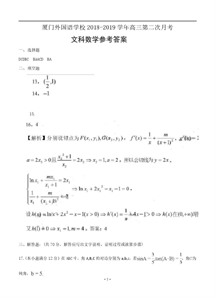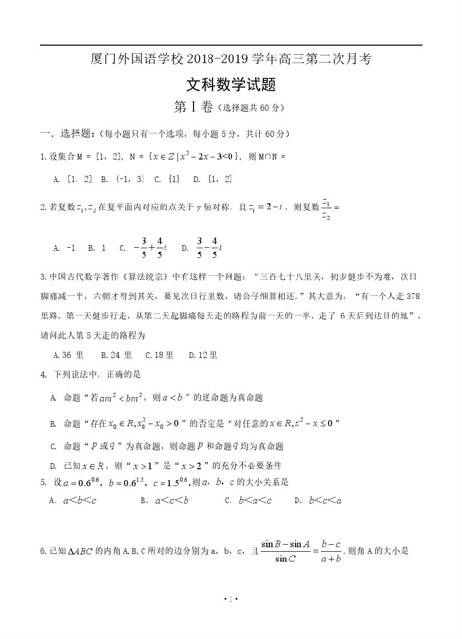 【摘要】廈門外國語學(xué)校2019屆高三11月月考文數(shù)試卷及參考答案!更多高考信息可關(guān)注閩州教育高考資訊專欄。