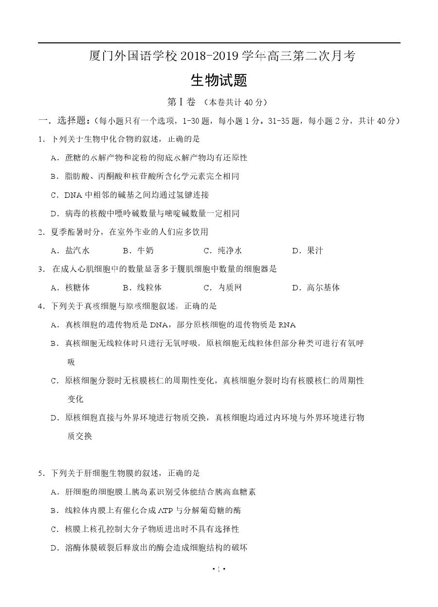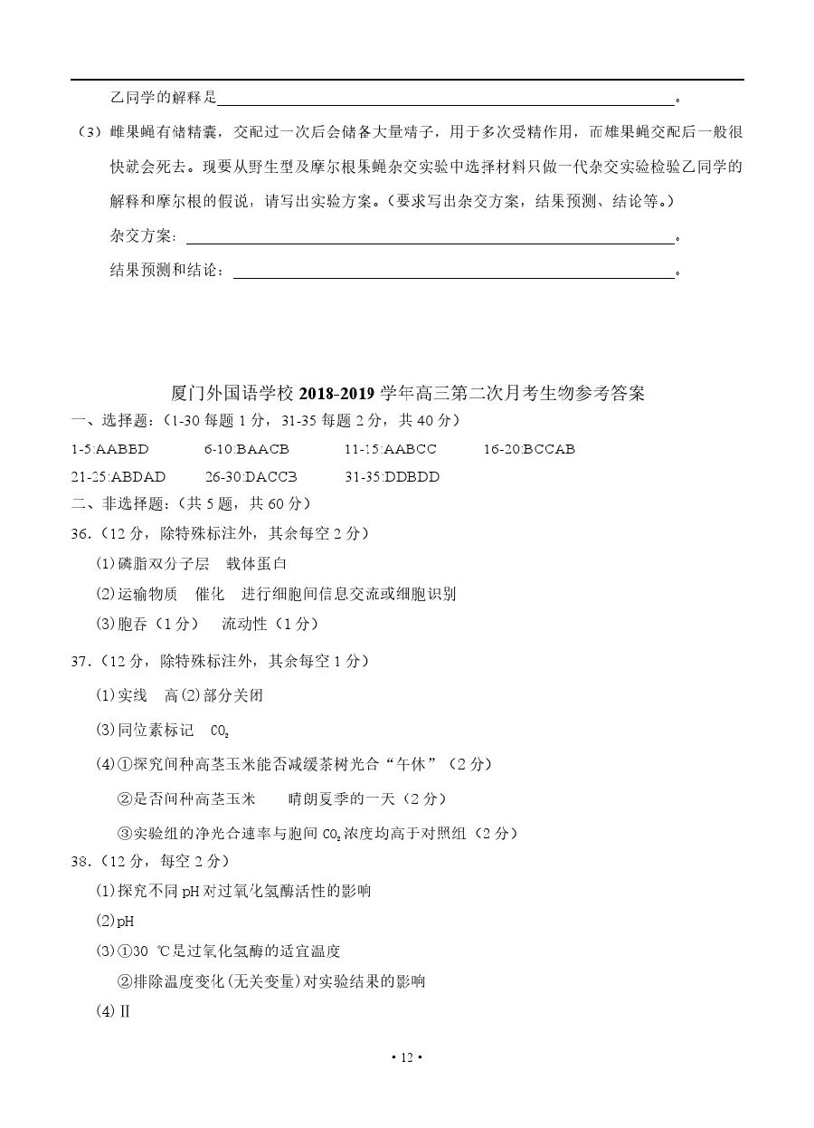 【摘要】廈門外國(guó)語(yǔ)學(xué)校2019屆高三11月月考生物試卷及參考答案!考生們可以針對(duì)題目來更好的復(fù)習(xí)哦,更多高考信息可關(guān)注閩州教育高考資訊專欄。