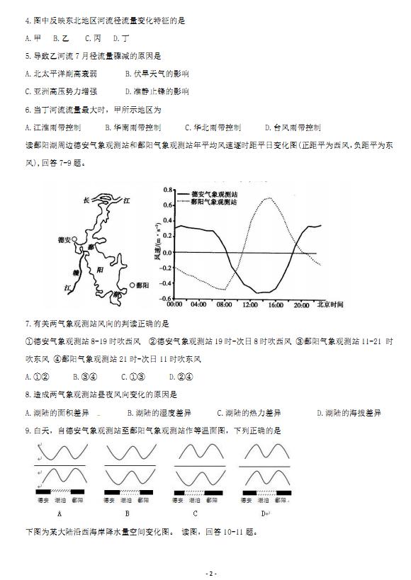 福建省莆田第九中學(xué)2019屆高三地理上學(xué)期第二次調(diào)研試題(掃描版)