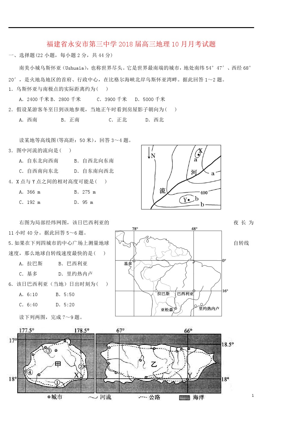 【摘要】福建省永安市第三中學(xué)2018屆高三地理10月月考試題及答案!更多高考信息可關(guān)注閩州教育高考資訊專欄。