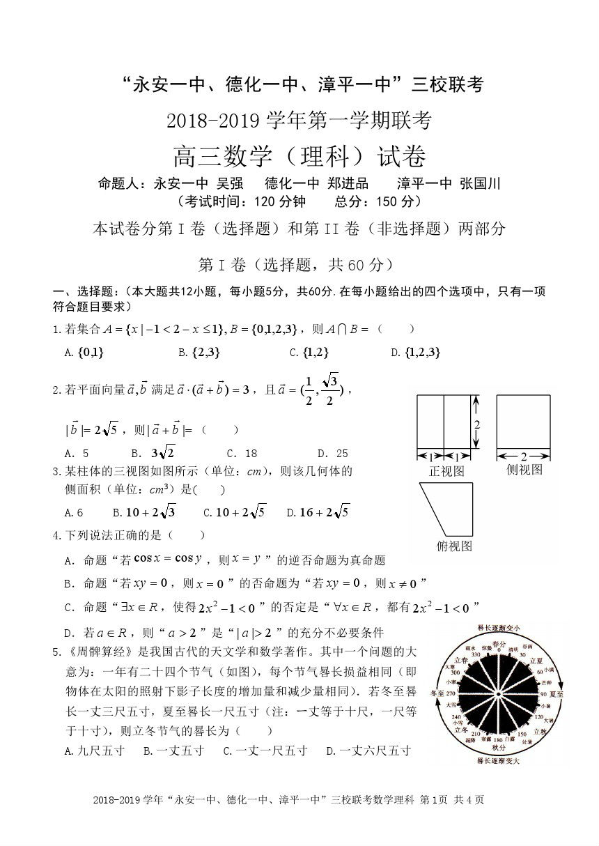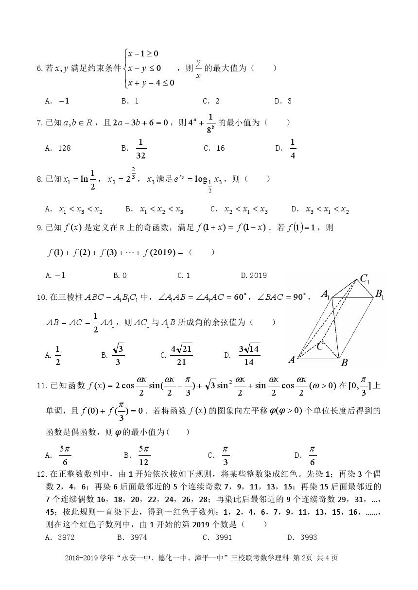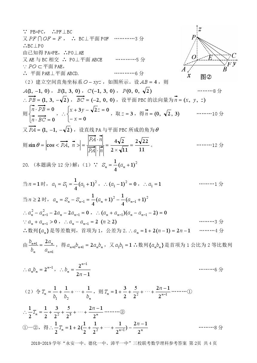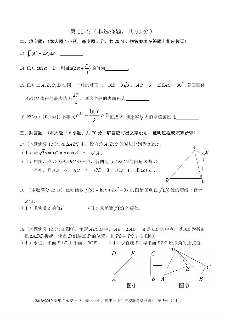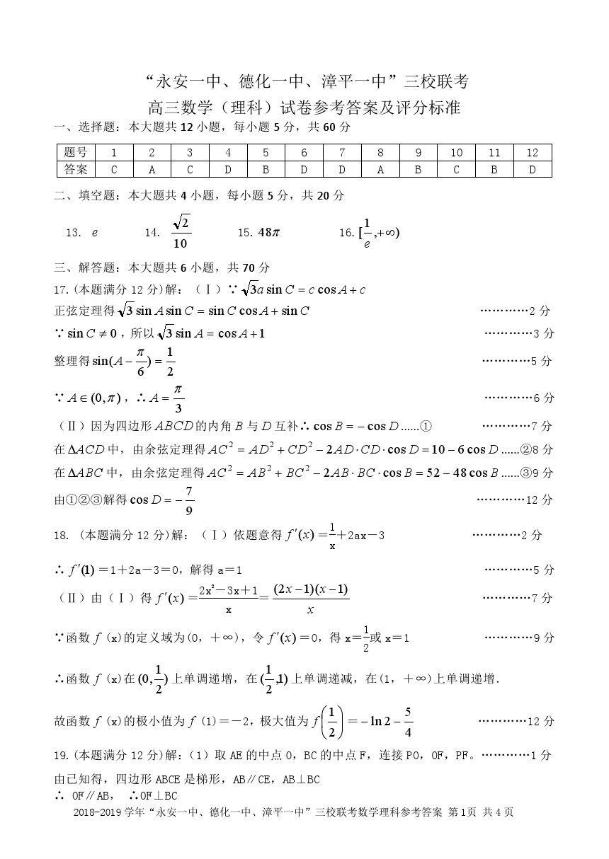 【摘要】2019“永安一中、德化一中、漳平一中”高三12月三校聯(lián)考理數(shù)試題及參考答案!更多高考信息可關(guān)注閩州教育高考資訊專欄。