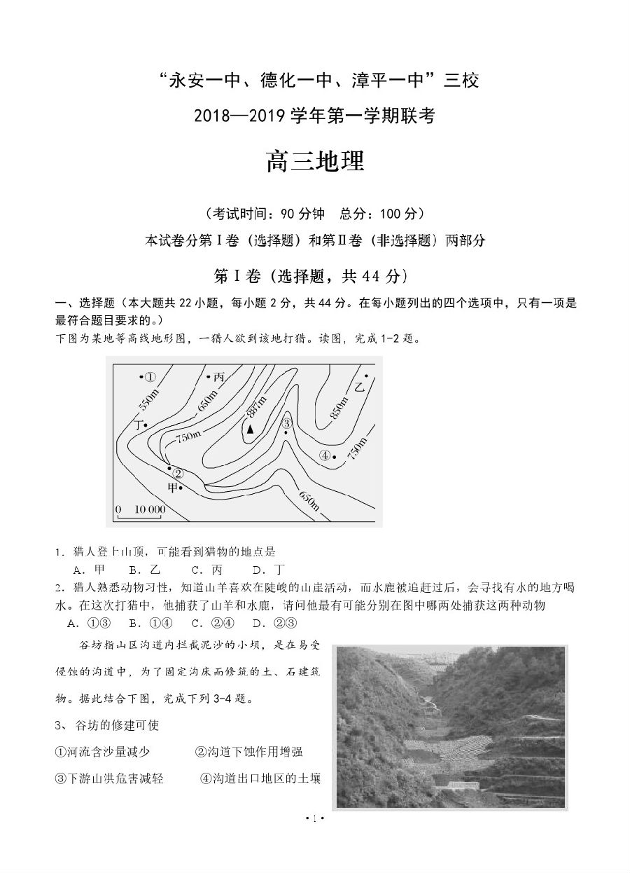 【摘要】2019“永安一中、德化一中、漳平一中”高三12月三校聯(lián)考地理試題及參考答案!供同學(xué)們參考!更多高考信息可關(guān)注閩州教育高考資訊專欄。