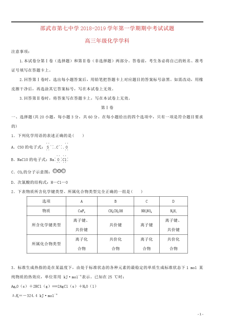 【摘要】福建省邵武七中2019屆高三化學(xué)上學(xué)期期中試題!更多高考信息可關(guān)注閩州教育高考資訊專欄