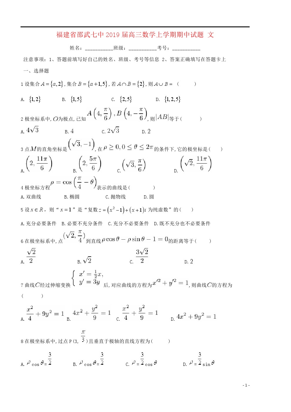 【摘要】福建省邵武七中2019屆高三數(shù)學(xué)上學(xué)期期中試題及答案(文科)。如需了解更多的高考信息可關(guān)注閩州教育高考資訊專欄。