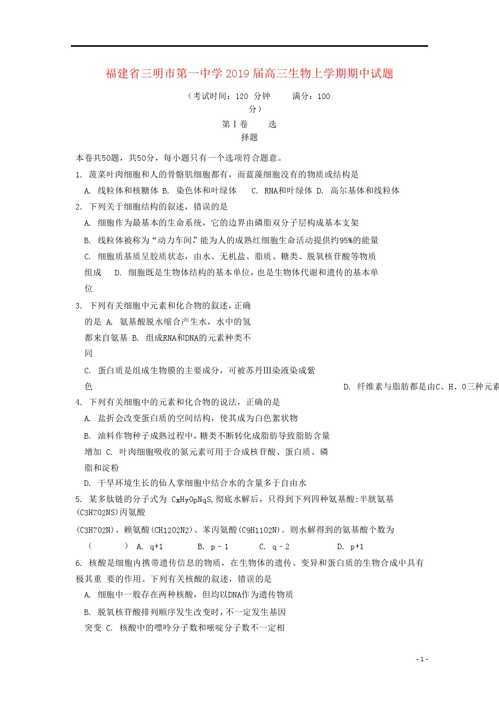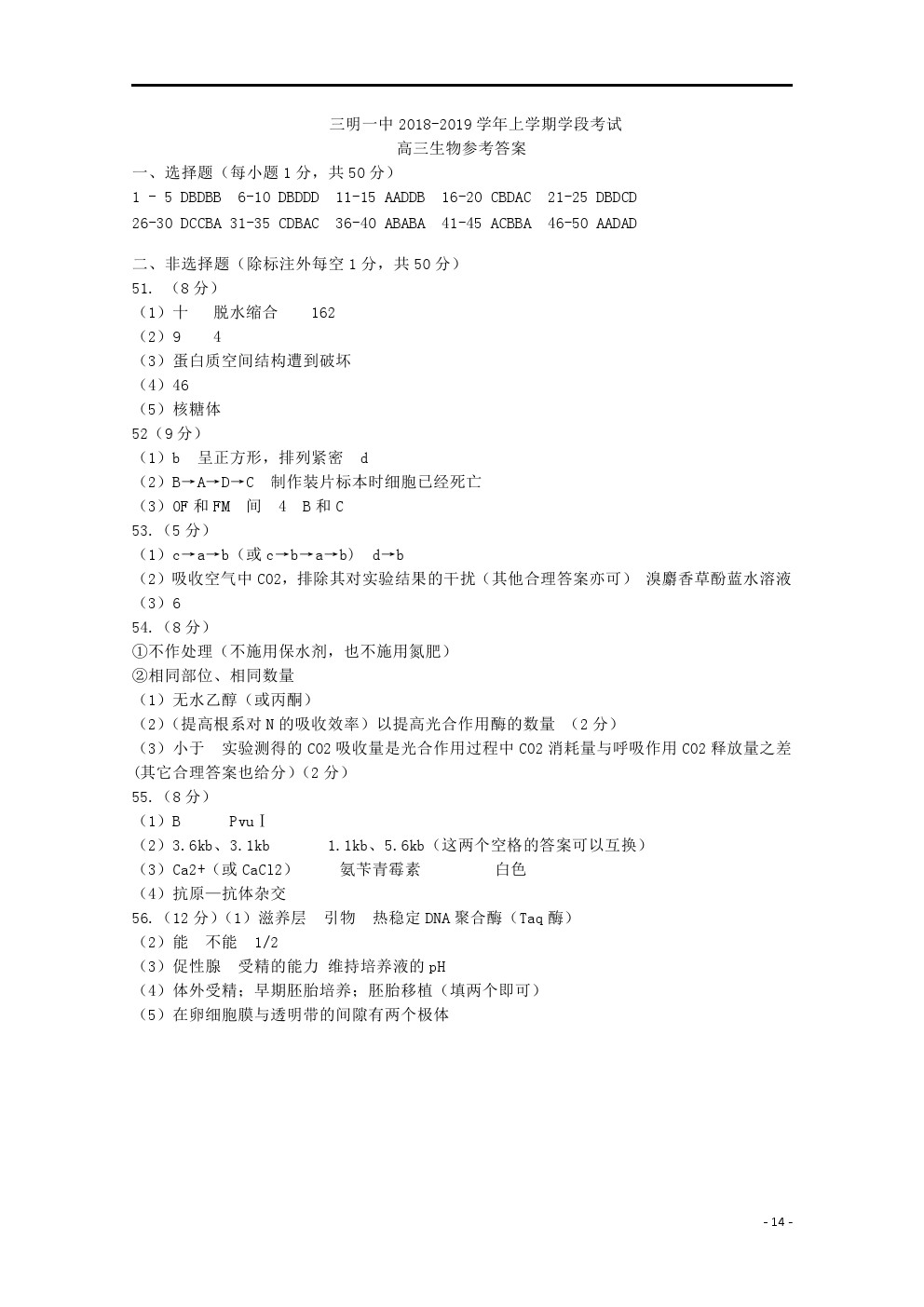 【摘要】福建省三明市第一中學(xué)2019屆高三生物上學(xué)期期中試題及答案!更多高考信息可關(guān)注閩州教育高考資訊專欄。