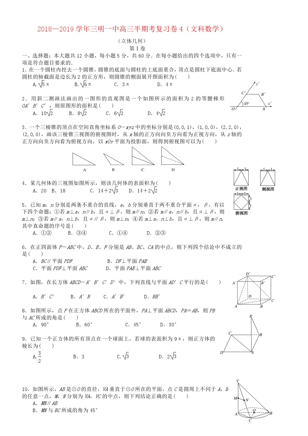 【摘要】福建省三明市第一中學(xué)2019屆高三文科數(shù)學(xué)上學(xué)期半期考復(fù)習(xí)卷4!更多高考信息可關(guān)注閩州教育高考資訊專欄。