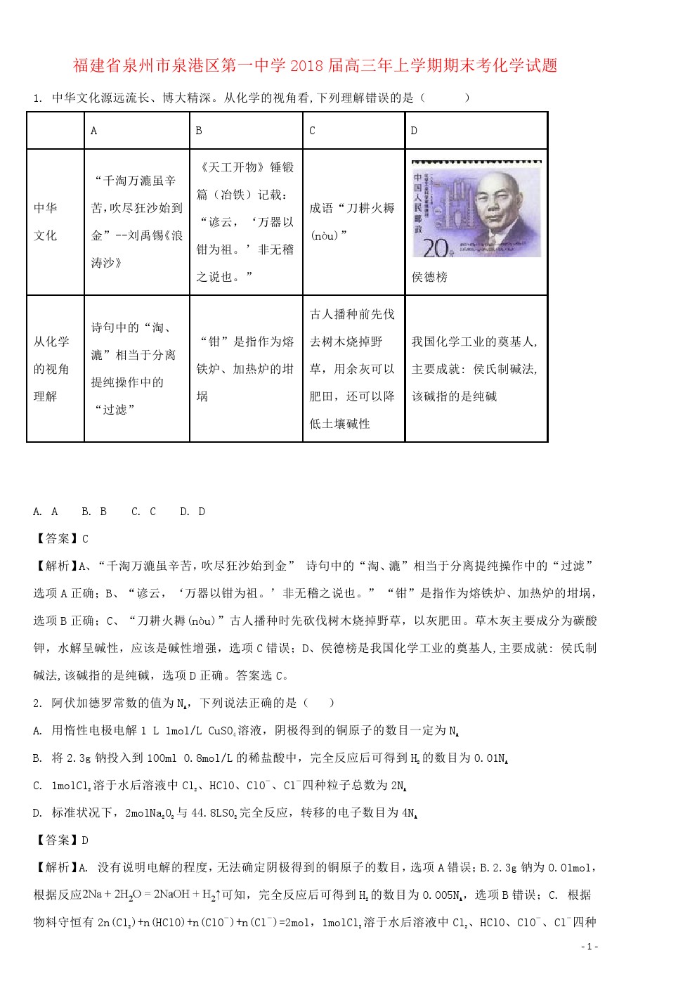 【摘要】福建省泉州市泉港區(qū)第一中學(xué)2018屆高三化學(xué)上學(xué)期期末考試試題及答案解析!更多高考信息可關(guān)注閩州教育高考資訊專(zhuān)欄。