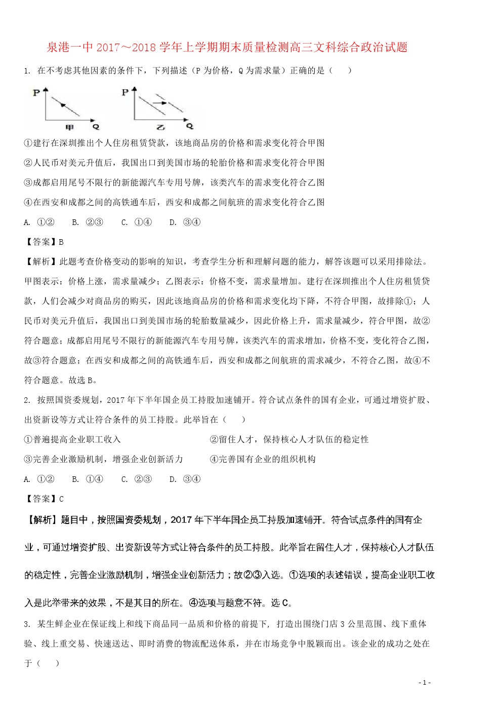 【摘要】福建省泉州市泉港區(qū)第一中學(xué)2018屆高三政治上學(xué)期期末考試試題及答案解析!更多高考信息可關(guān)注閩州高考資訊專欄。