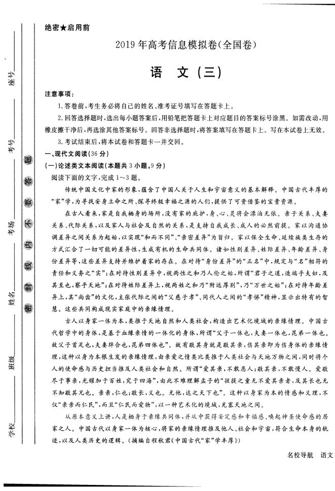 【摘要】2019年高三高考信息模擬卷(全國(guó)卷)語(yǔ)文(三)試題及答案,考生們可以針對(duì)題目來(lái)更好的復(fù)習(xí)哦,更多高考信息可關(guān)注閩州教育高考資訊專欄。