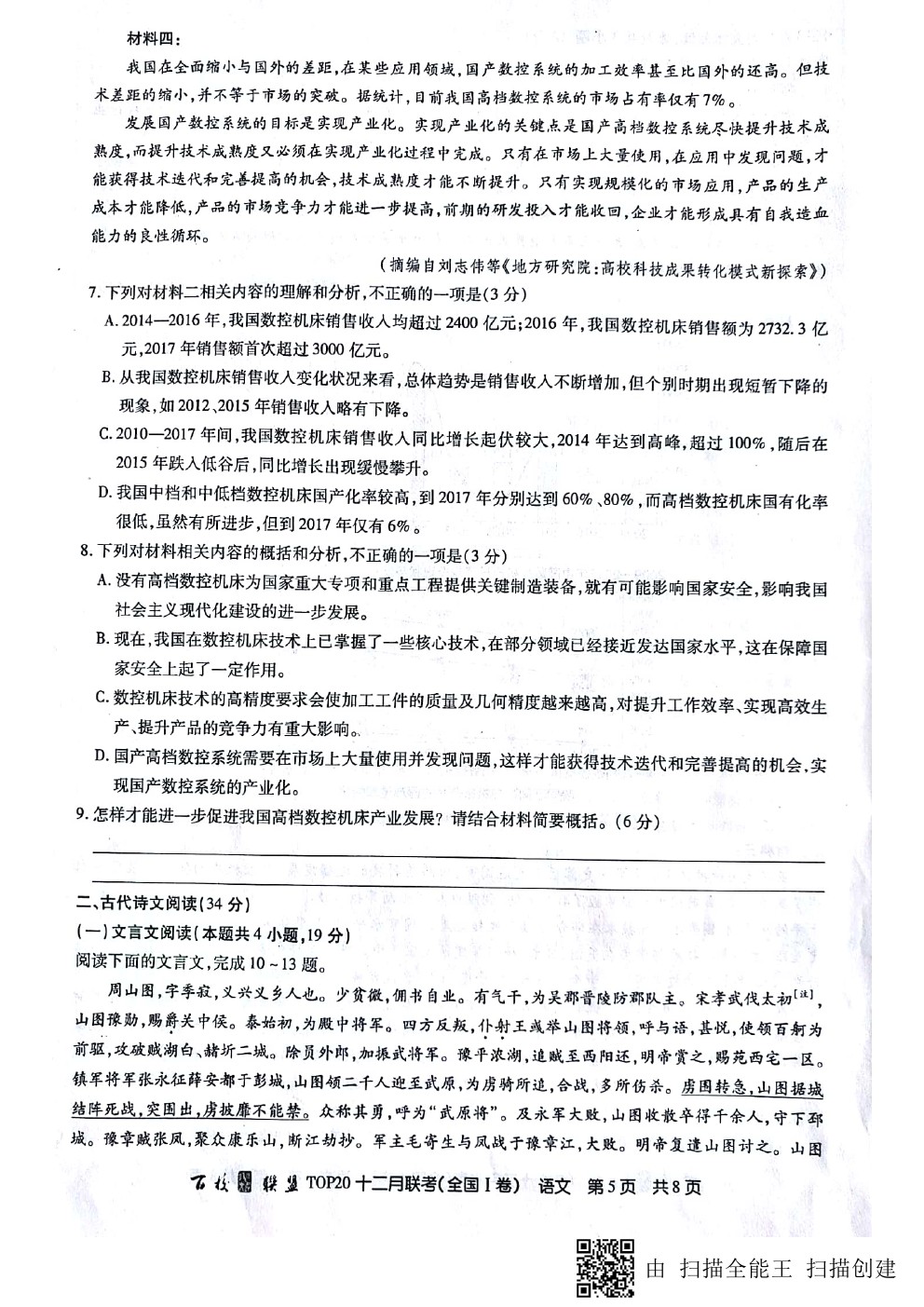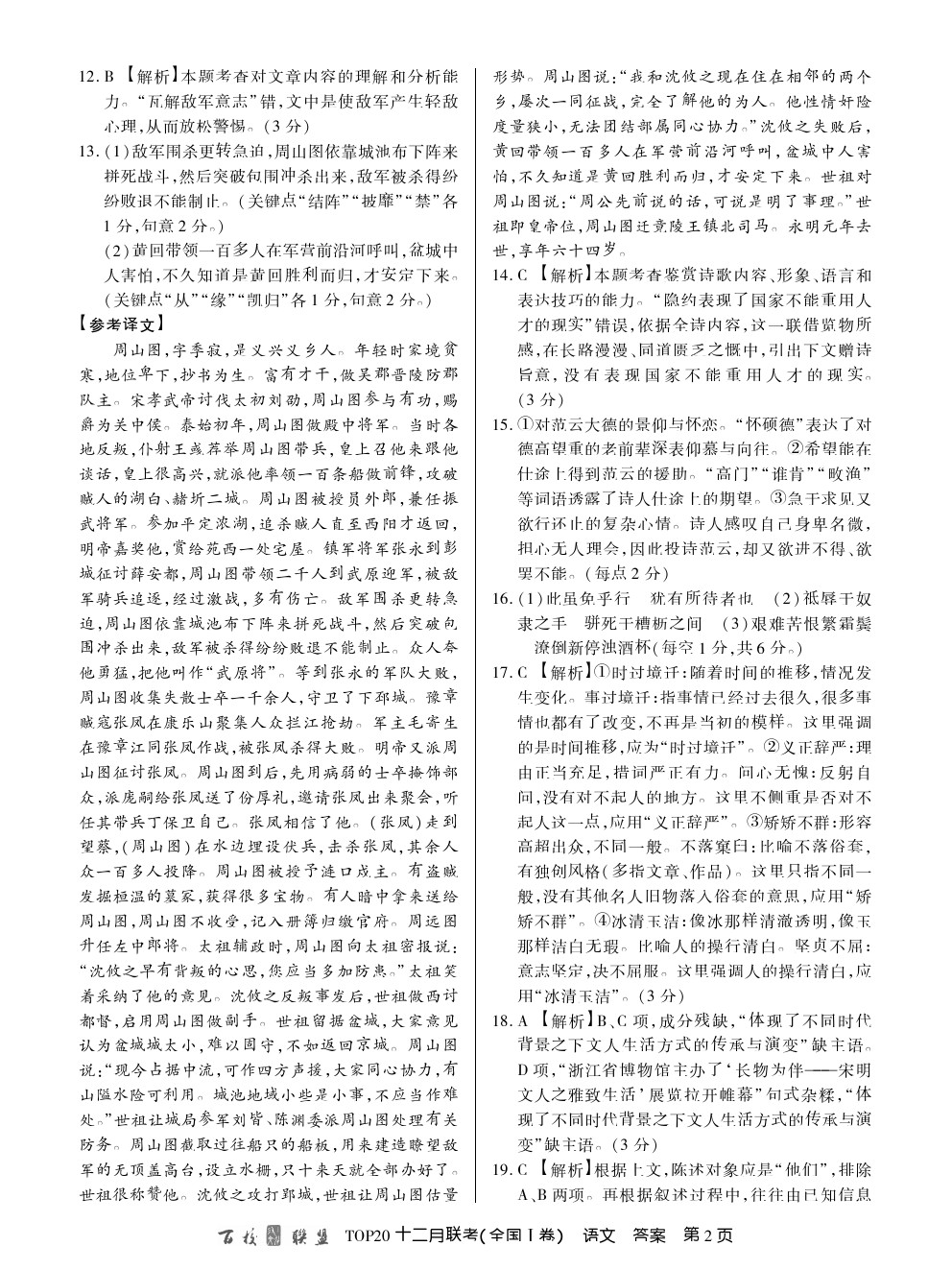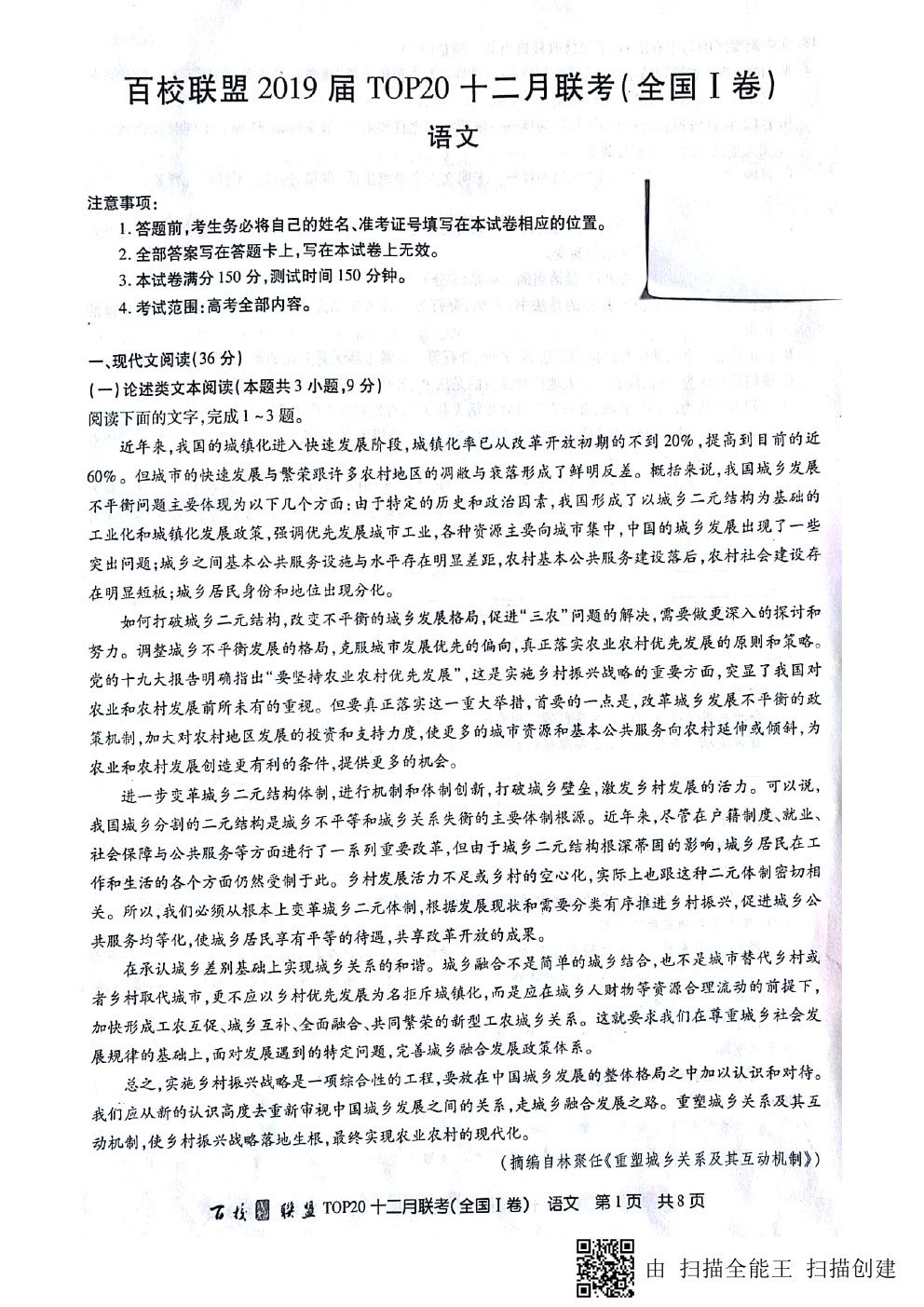 【摘要】百校聯(lián)盟2019屆高三年級(全國Ⅰ卷)12月聯(lián)考語文試題!供大家參考!更多高考信息可關注閩州教育高考資訊專欄。
