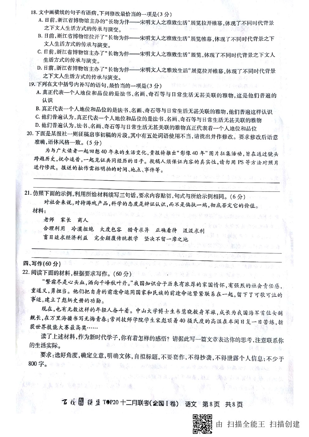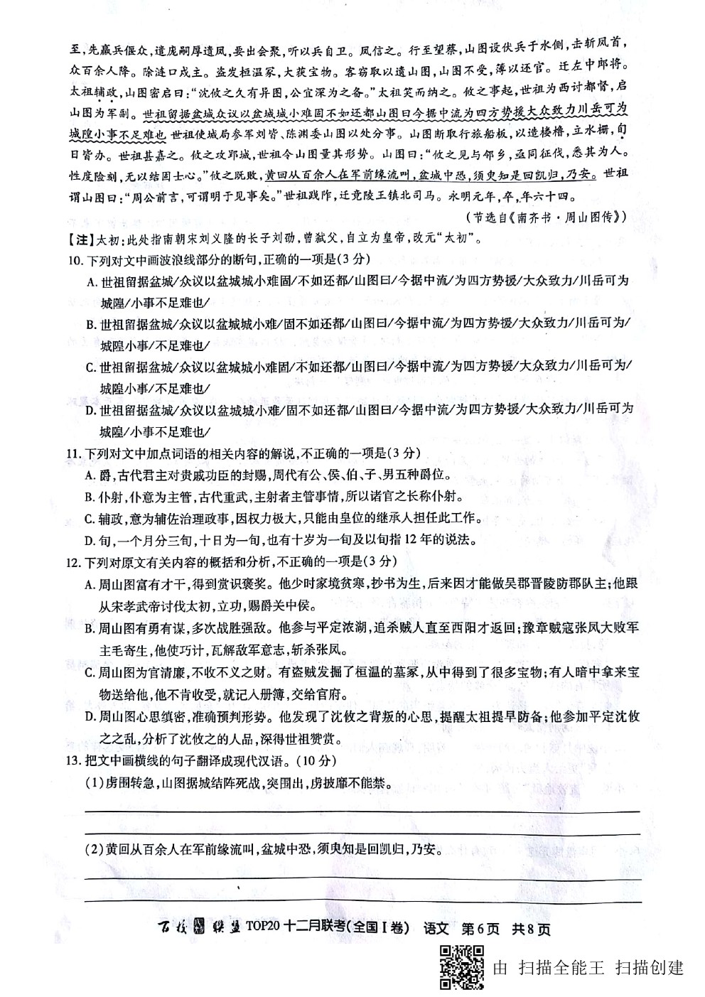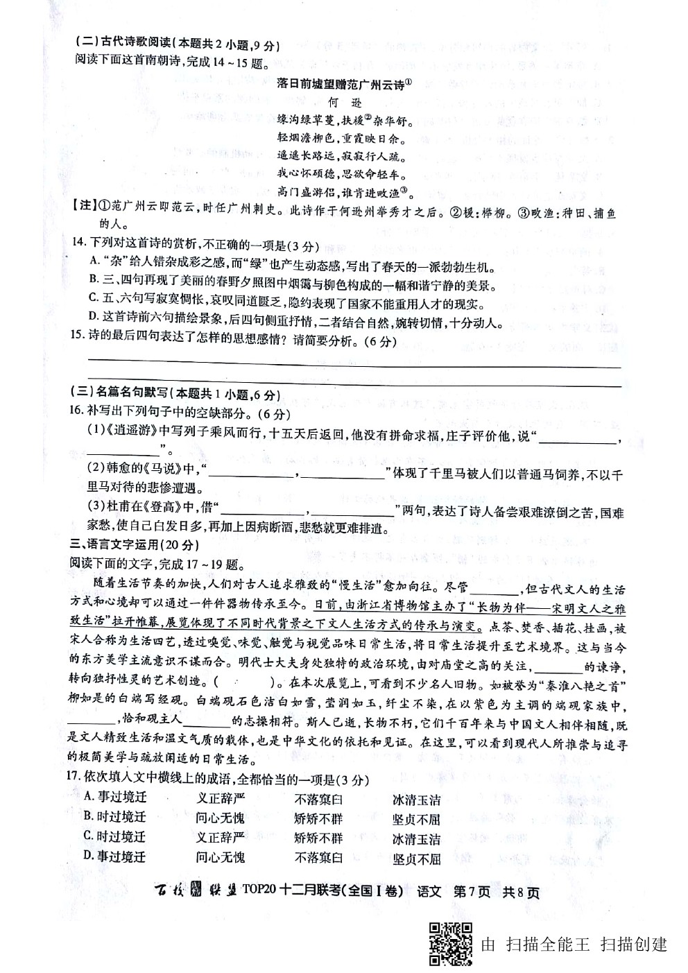 【摘要】百校聯(lián)盟2019屆高三年級(全國Ⅰ卷)12月聯(lián)考語文試題!供大家參考!更多高考信息可關注閩州教育高考資訊專欄。