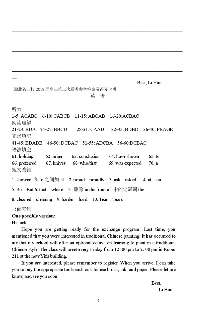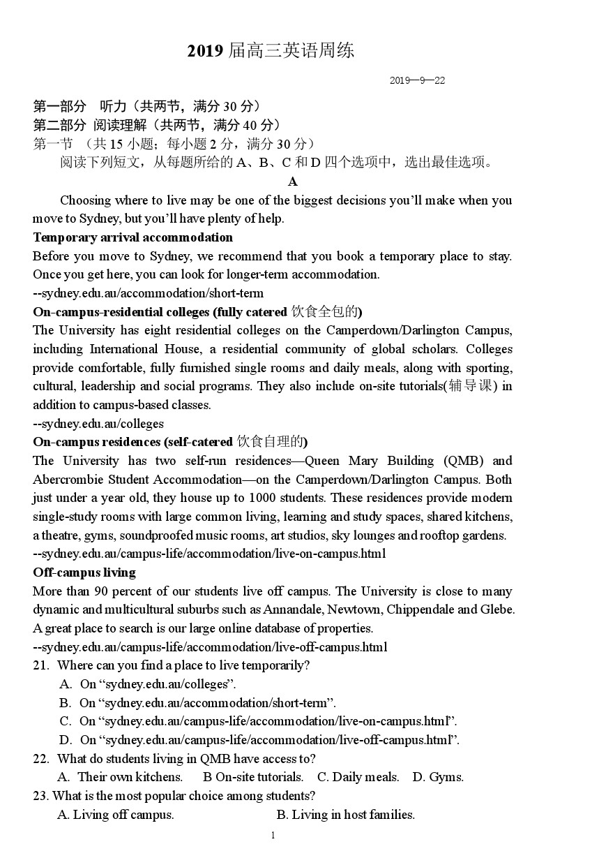 【摘要】福建省尤溪一中2018-2019學(xué)年上學(xué)期高三英語(yǔ)第1周周練!更多高考信息可關(guān)注閩州教育高考資訊專欄。