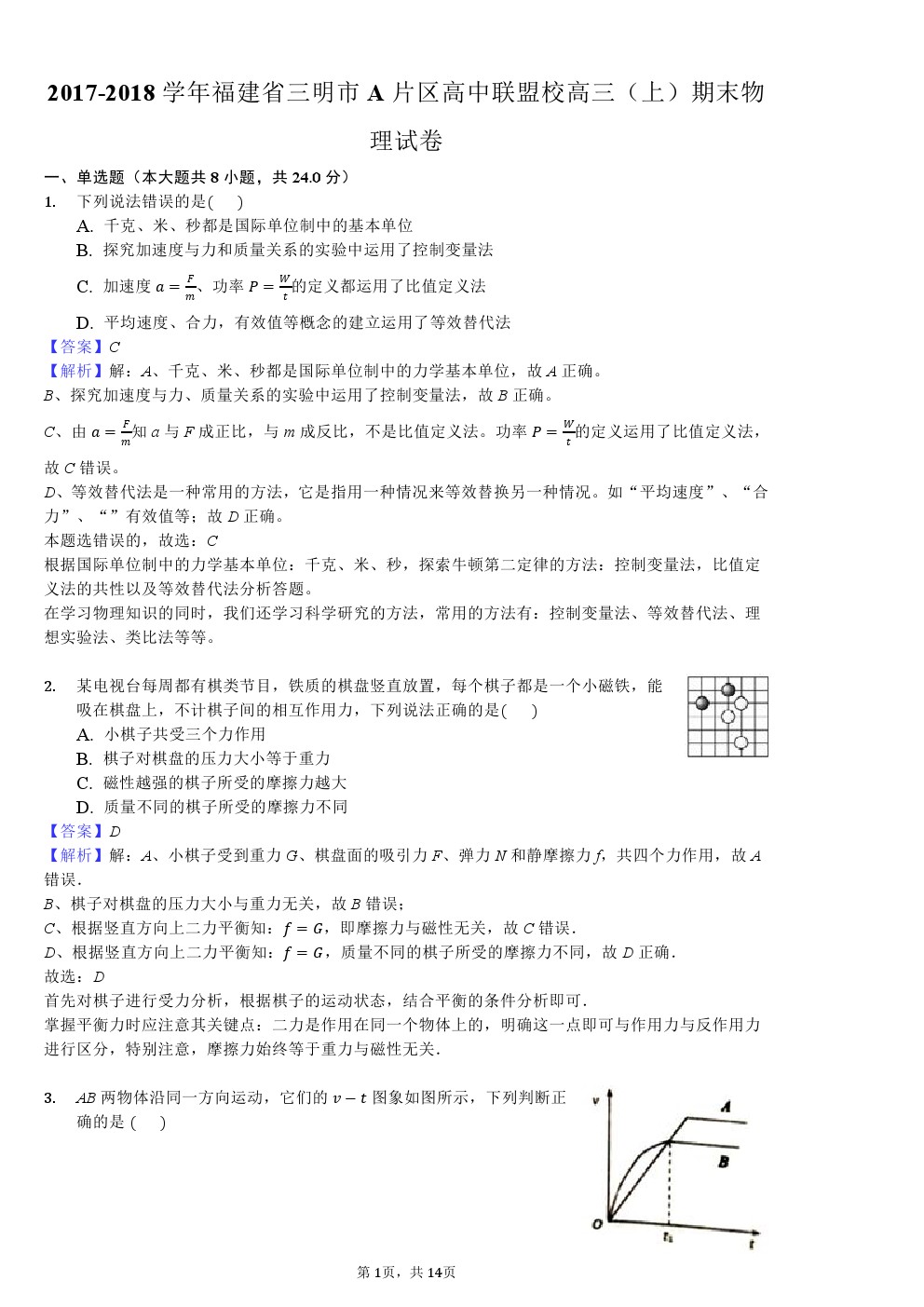 【摘要】2018學(xué)年福建省三明市A片區(qū)高中聯(lián)盟校高三(上)期末物理試題及答案解析。更多高考信息可關(guān)注閩州教育高考資訊專欄。