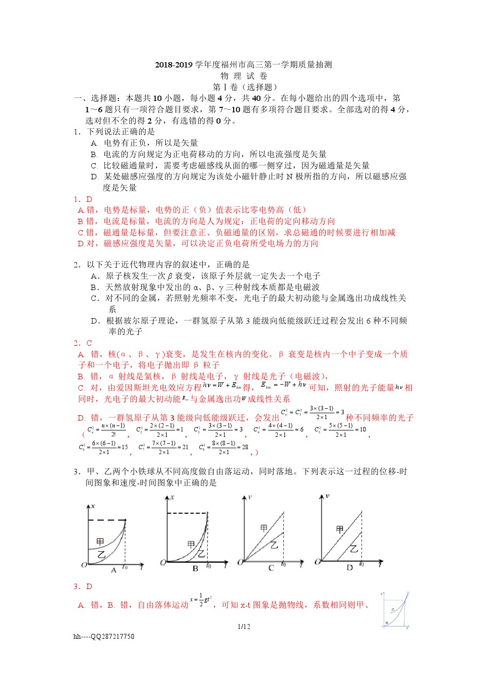 【摘要】2018-2019學(xué)年度福州市高三第一學(xué)期質(zhì)量抽測(cè)物理試題,考生們可以針對(duì)題目來(lái)更好的復(fù)習(xí)哦,更多高考信息可關(guān)注閩州教育高考資訊專欄。