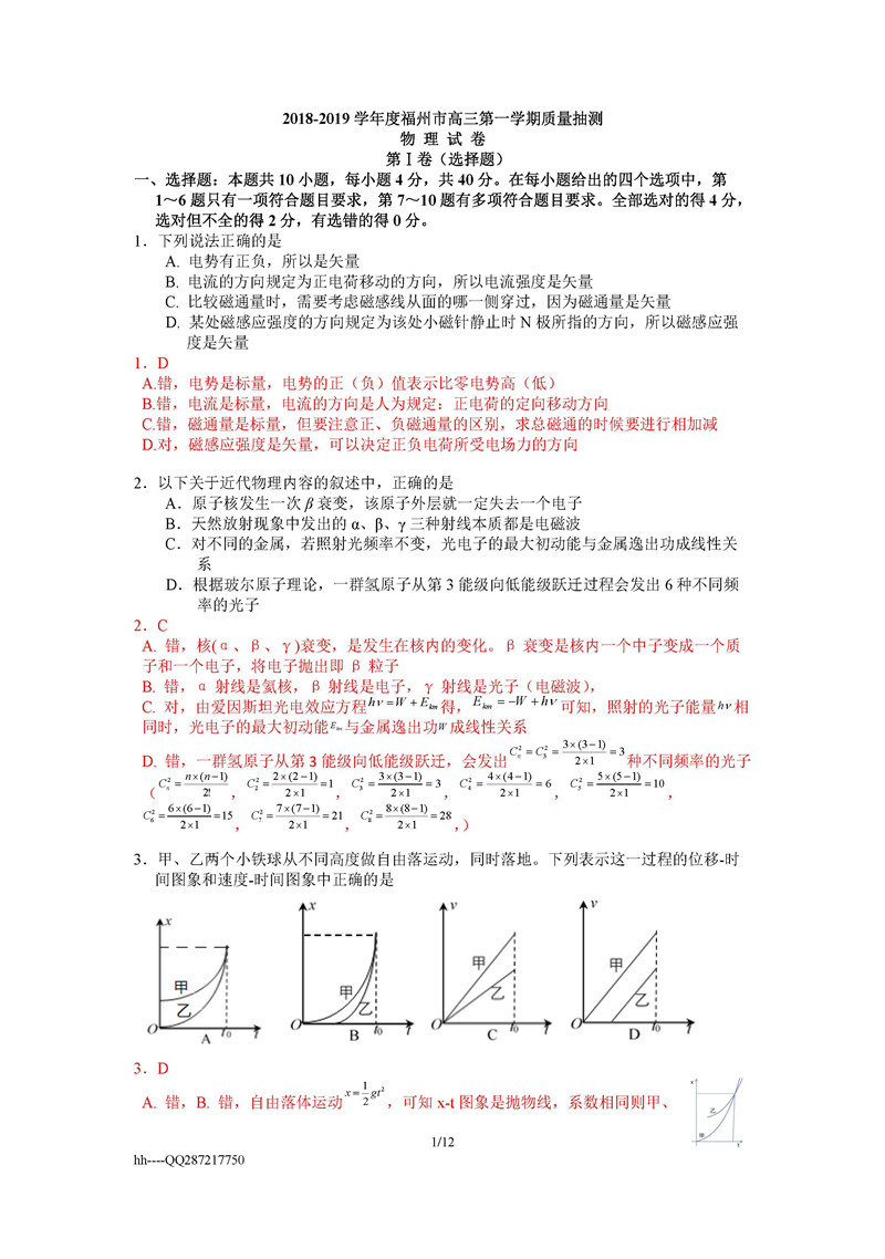 【摘要】2019福建省福州市高三上學期期末質檢物理試題及答案!更多高考信息可關注閩州教育高考資訊專欄。