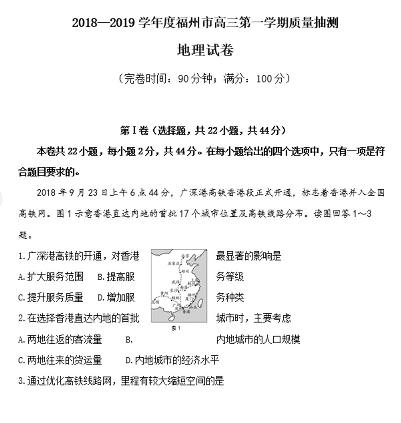 【摘要】2019福建省福州市高三上學(xué)期期末質(zhì)檢地理試題及答案!更多高考信息可關(guān)注閩州教育高考資訊專(zhuān)欄。