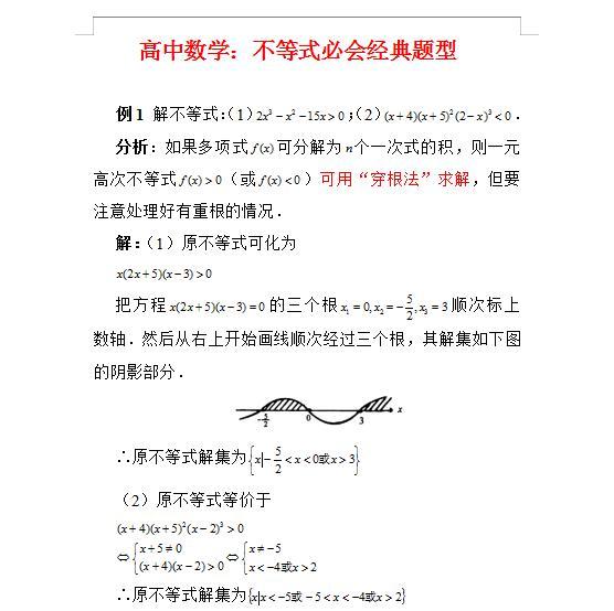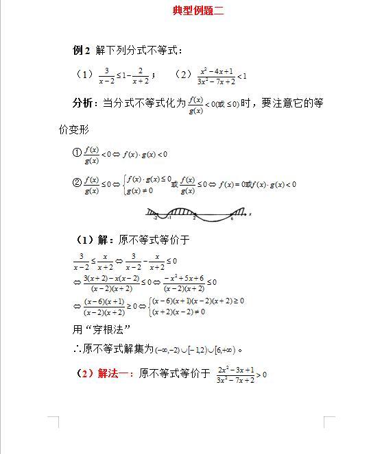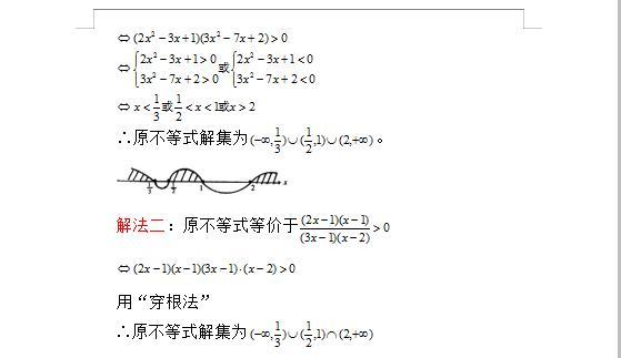 的系數(shù)必為正;②對于偶次或奇次重根可轉(zhuǎn)化為不含重根的不等式,也可直接用“穿根法”,但注意“奇穿偶不穿”,其法如下圖。
