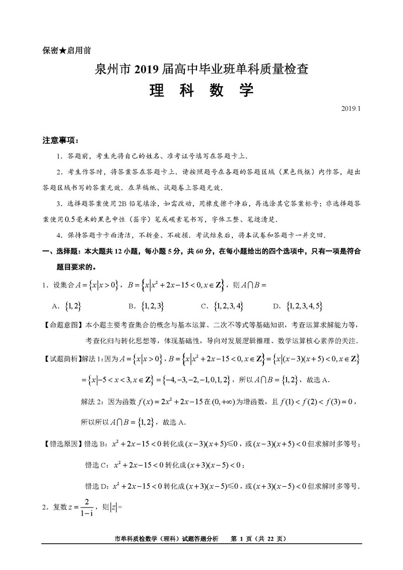 【摘要】2019屆上學(xué)期福建泉州高三1月單科質(zhì)檢數(shù)學(xué)(理)試題及答案!更多高考信息可關(guān)注閩州教育高考資訊專欄。