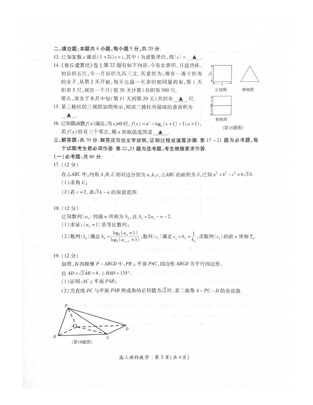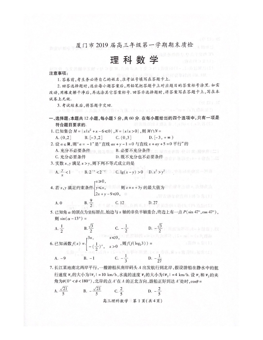 【摘要】福建省廈門市2019屆高三年級(jí)第一學(xué)期期末質(zhì)檢理科數(shù)學(xué)試題!更多高考信息可關(guān)注閩州教育高考資訊專欄。