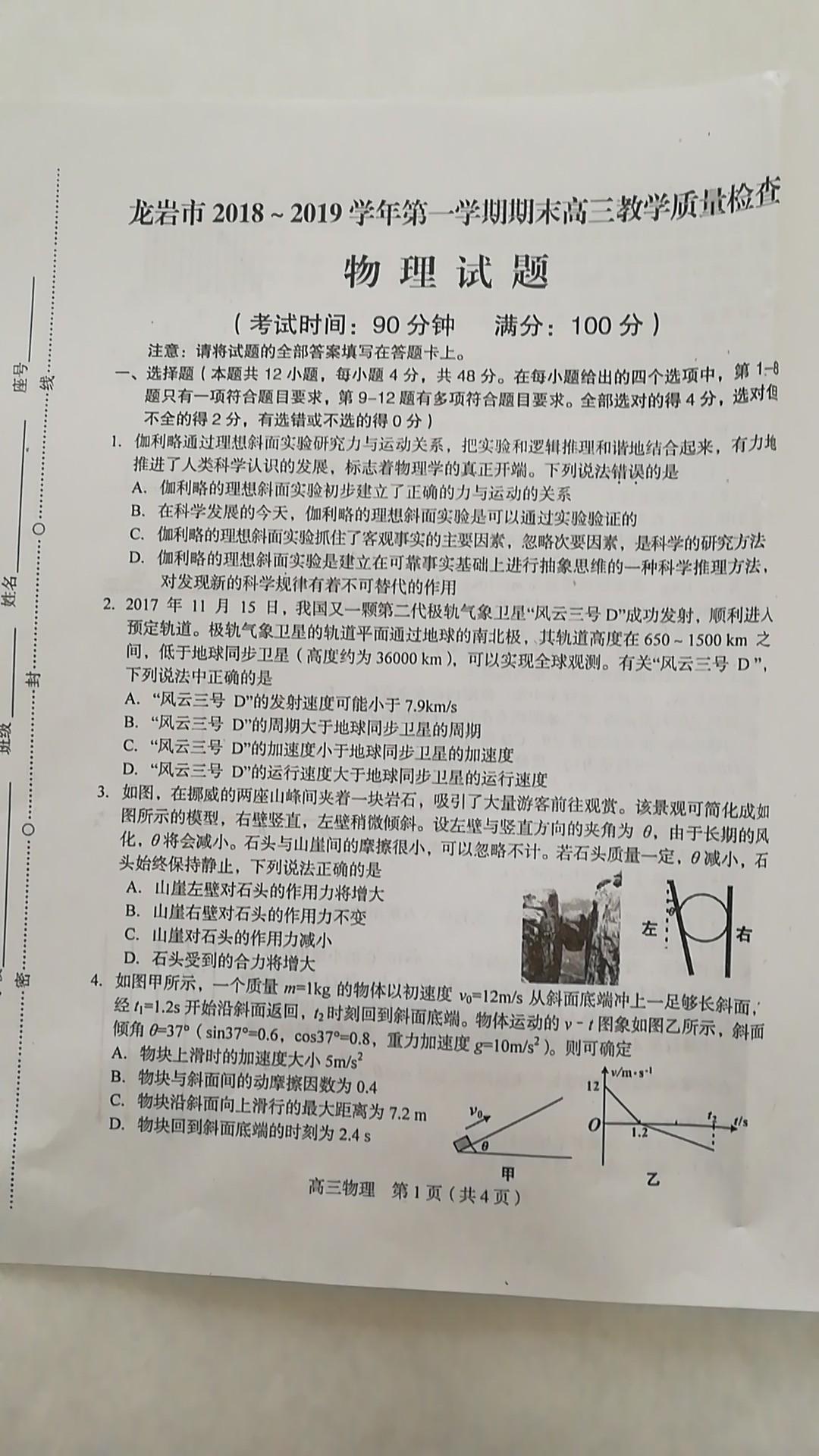 【摘要】福建省龍巖市2019屆高三上學(xué)期期末考試物理試題及答案。更多高考信息可關(guān)注閩州教育高考資訊專欄。