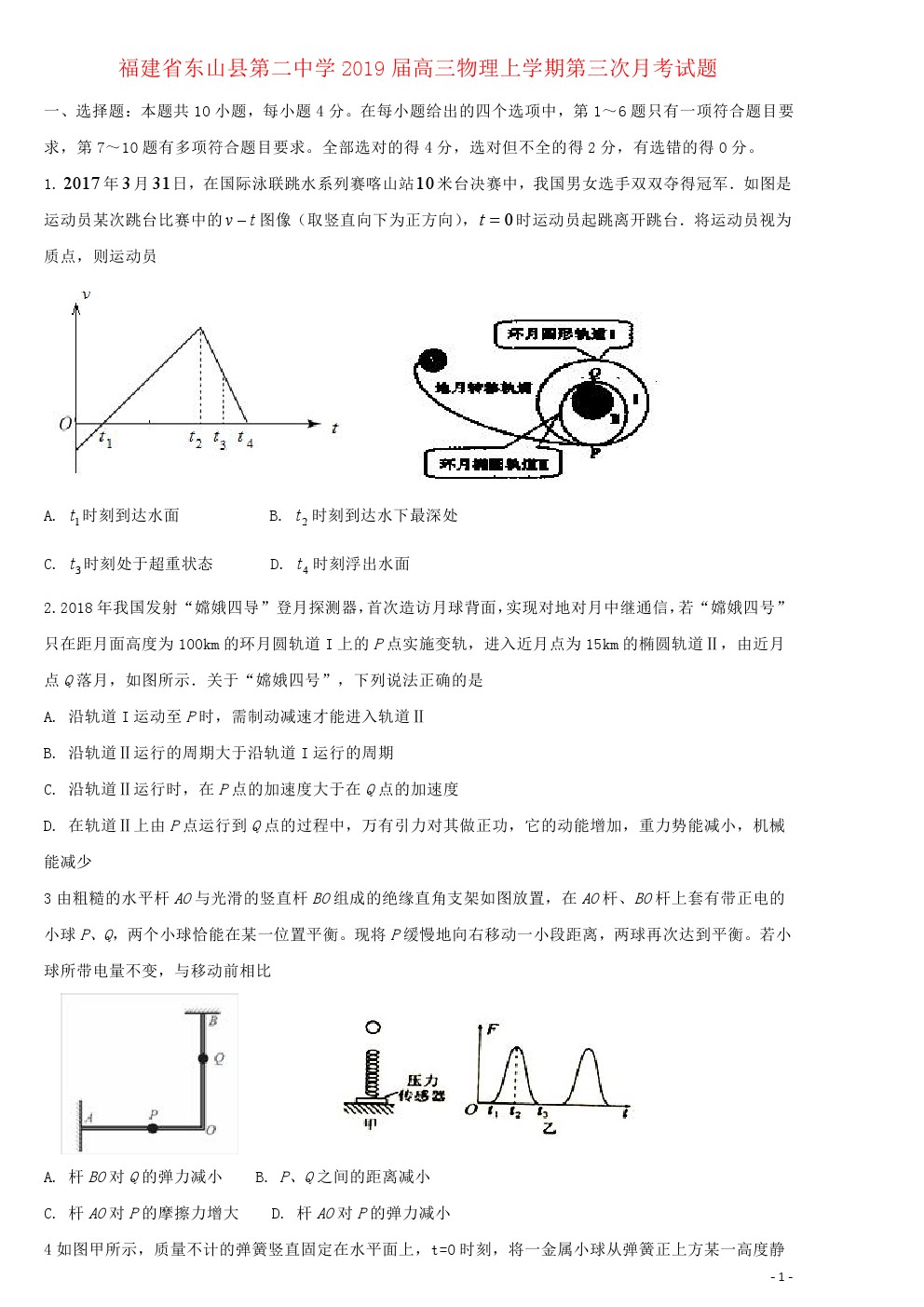 【摘要】福建省東山縣第二中學2019屆高三物理上學期第三次月考試題及答案,更多高考信息可關(guān)注閩州教育高考資訊專欄。