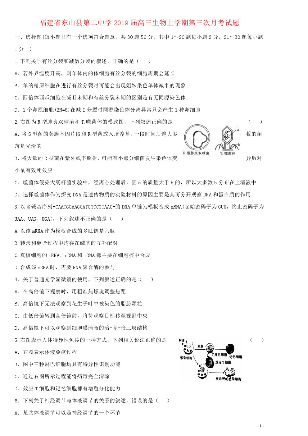 【摘要】福建省東山縣第二中學(xué)2019屆高三生物上學(xué)期第三次月考試題及答案!更多高考信息可關(guān)注閩州教育高考資訊專欄。