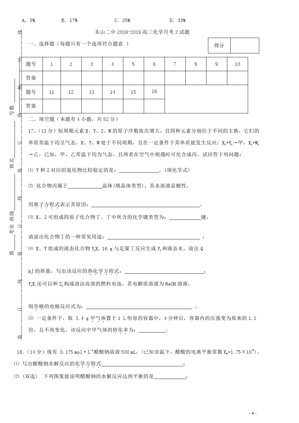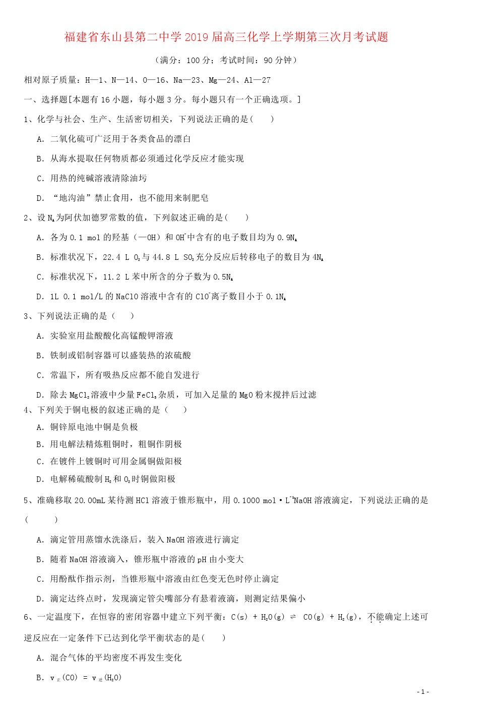 【摘要】福建省東山縣第二中學(xué)2019屆高三化學(xué)上學(xué)期第三次月考試題及答案案!更多高考信息可關(guān)注閩州教育高考資訊專欄。