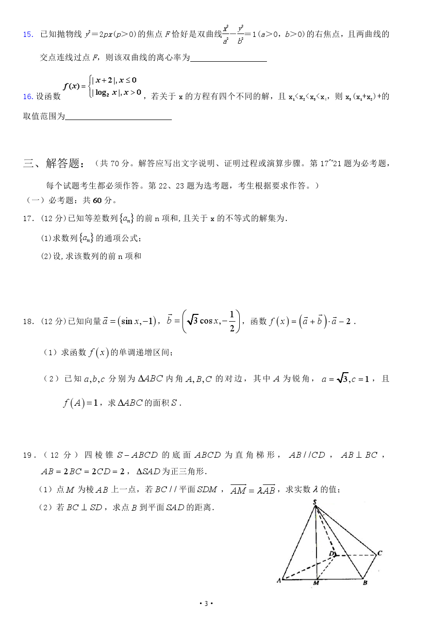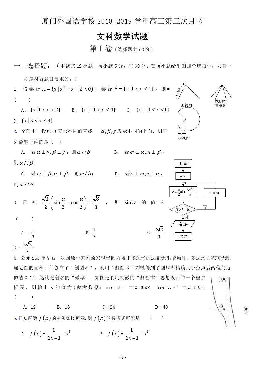 【摘要】福建省廈門外國語學校2019屆高三第三次月考數(shù)學(文)試題及答案。更多高考信息可關注閩州教育高考資訊專欄。