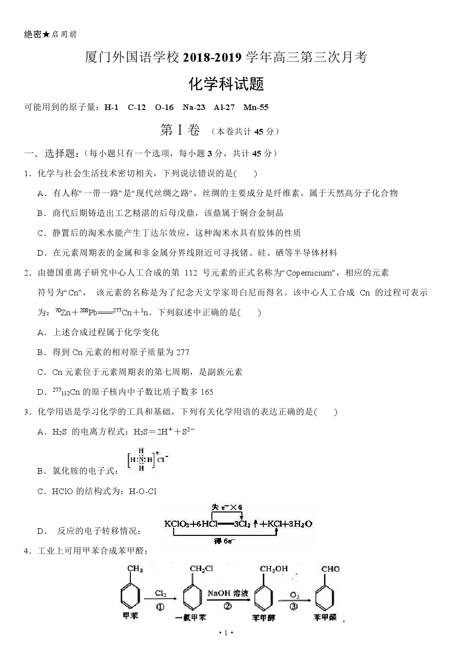 【摘要】福建省廈門外國(guó)語(yǔ)學(xué)校2019屆高三第三次月考化學(xué)試題及答案,更多高考信息可關(guān)注閩州教育高考資訊專欄。