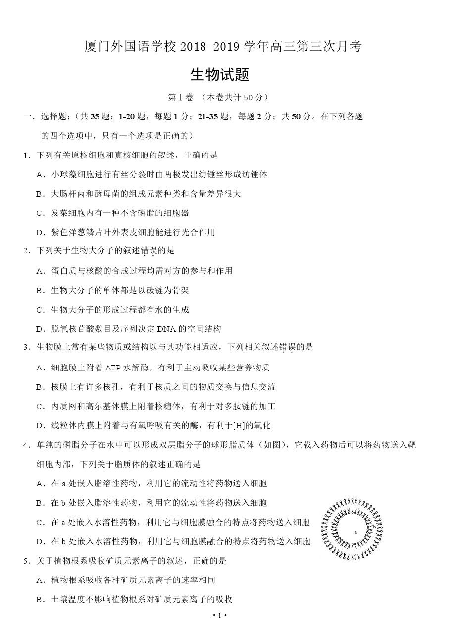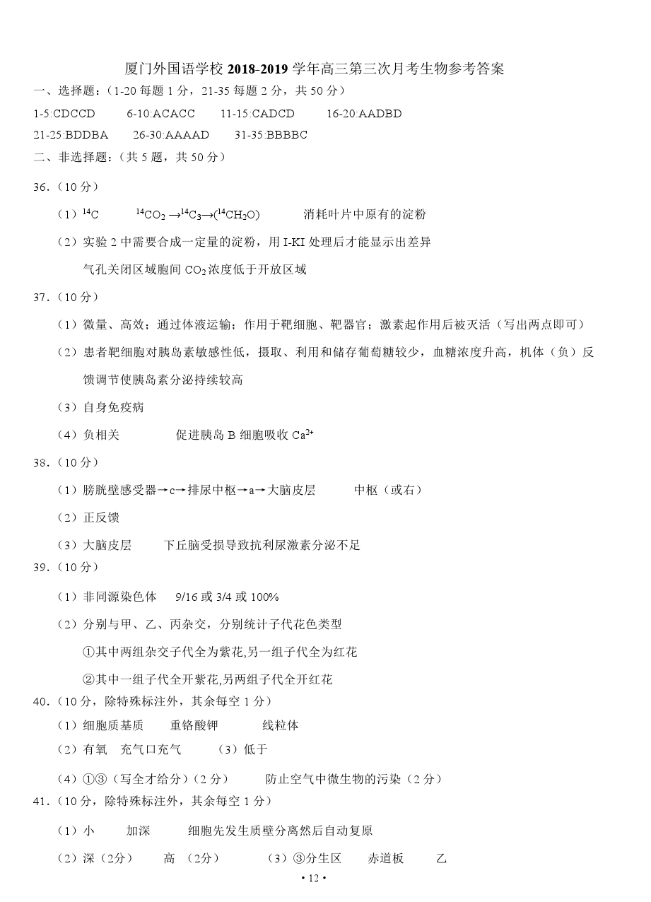 【摘要】福建省廈門外國語學(xué)校2019屆高三第三次月考生物試題及答案,更多高考信息可關(guān)注閩州教育高考資訊專欄。