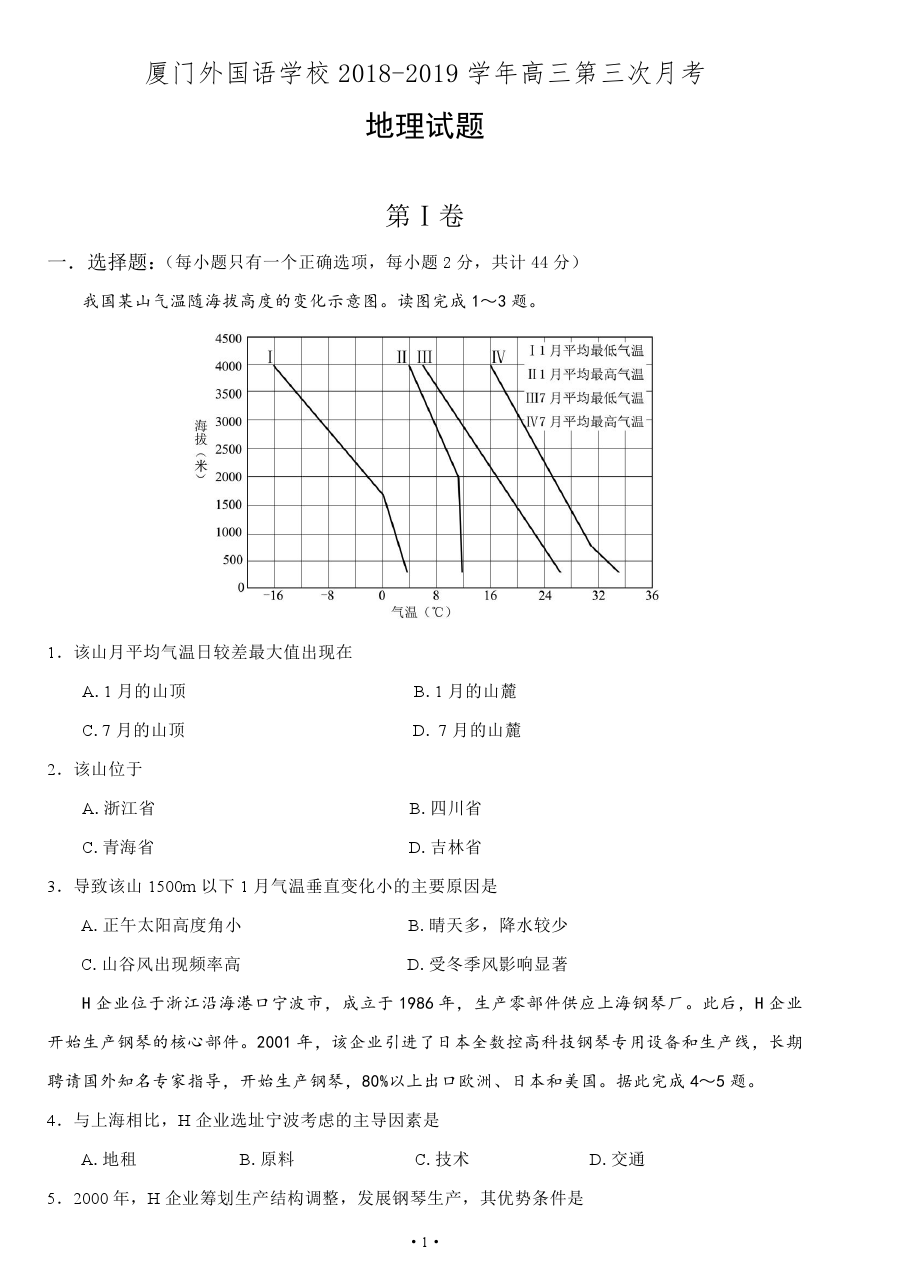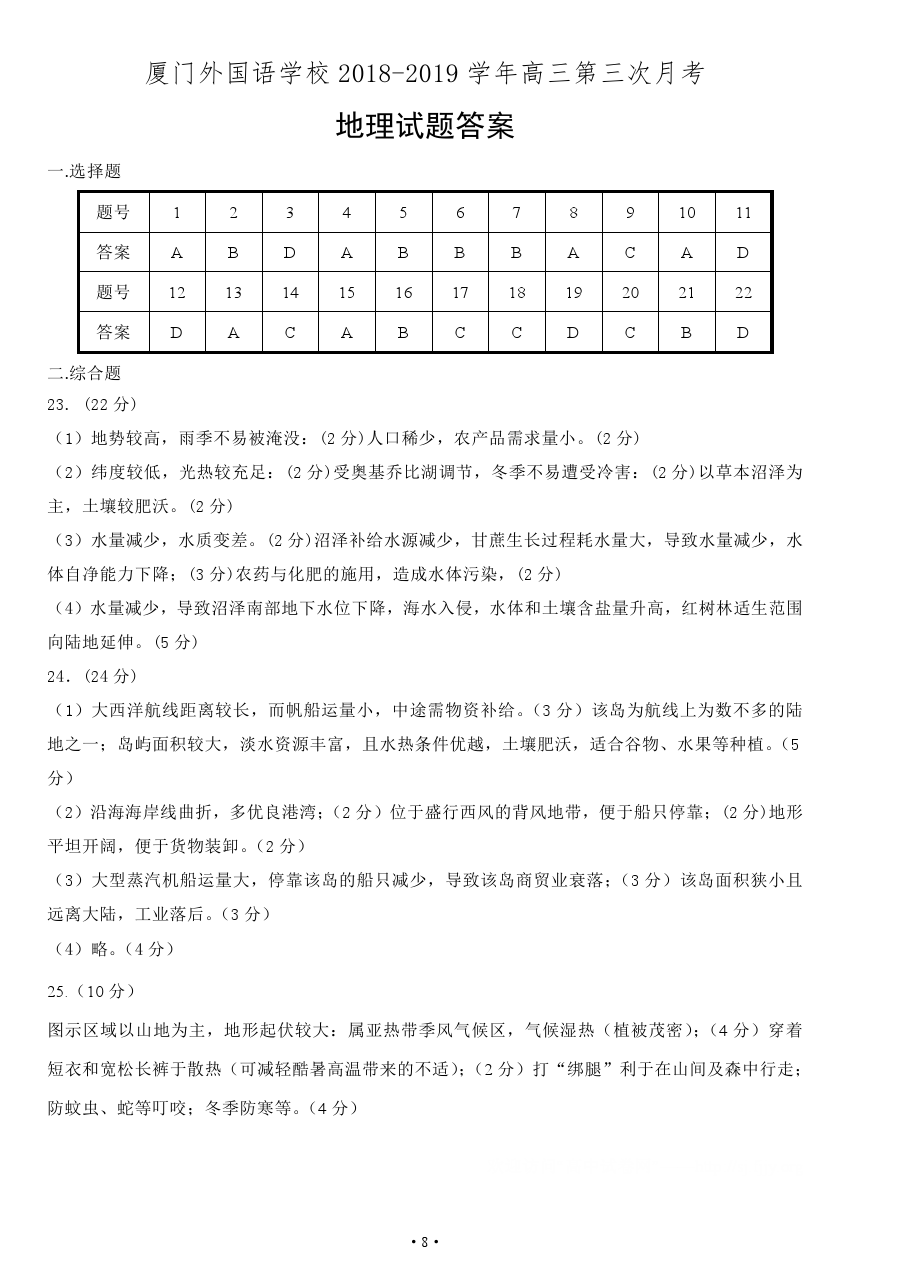 【摘要】福建省廈門外國語學(xué)校2019屆高三第三次月考地理試題及答案。更多高考信息可關(guān)注閩州教育高考資訊專欄。