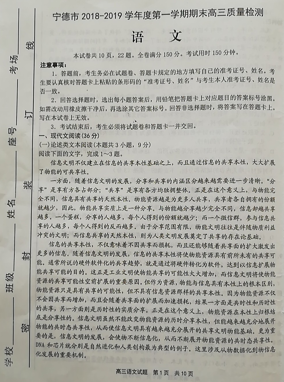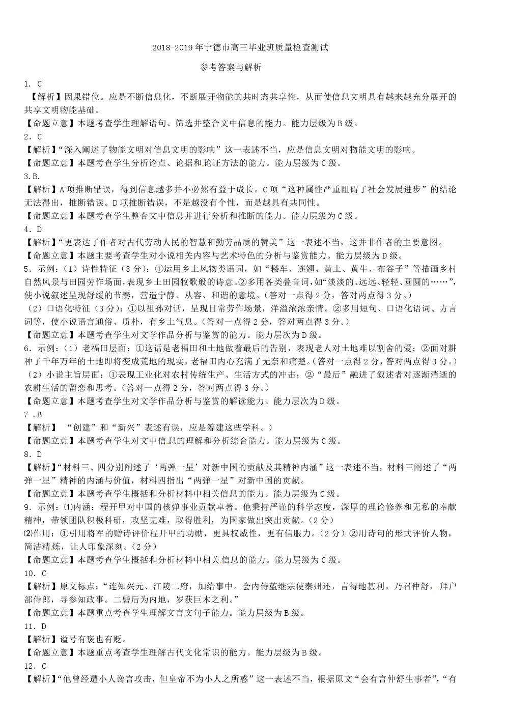 【摘要】福建省寧德市2019屆高三上學(xué)期期末質(zhì)量檢測語文試題及答案,更多高考信息可關(guān)注閩州教育高考資訊專欄。