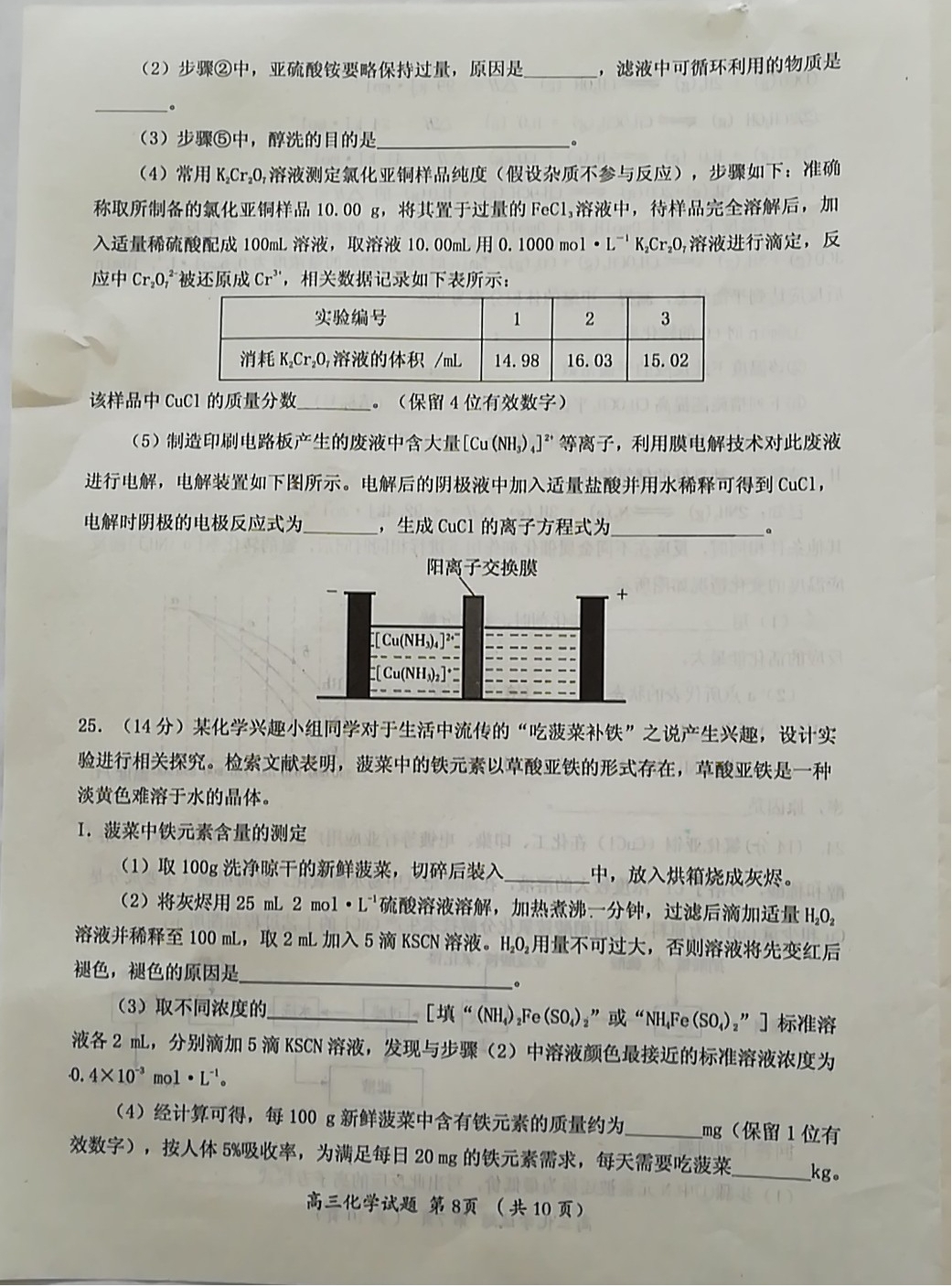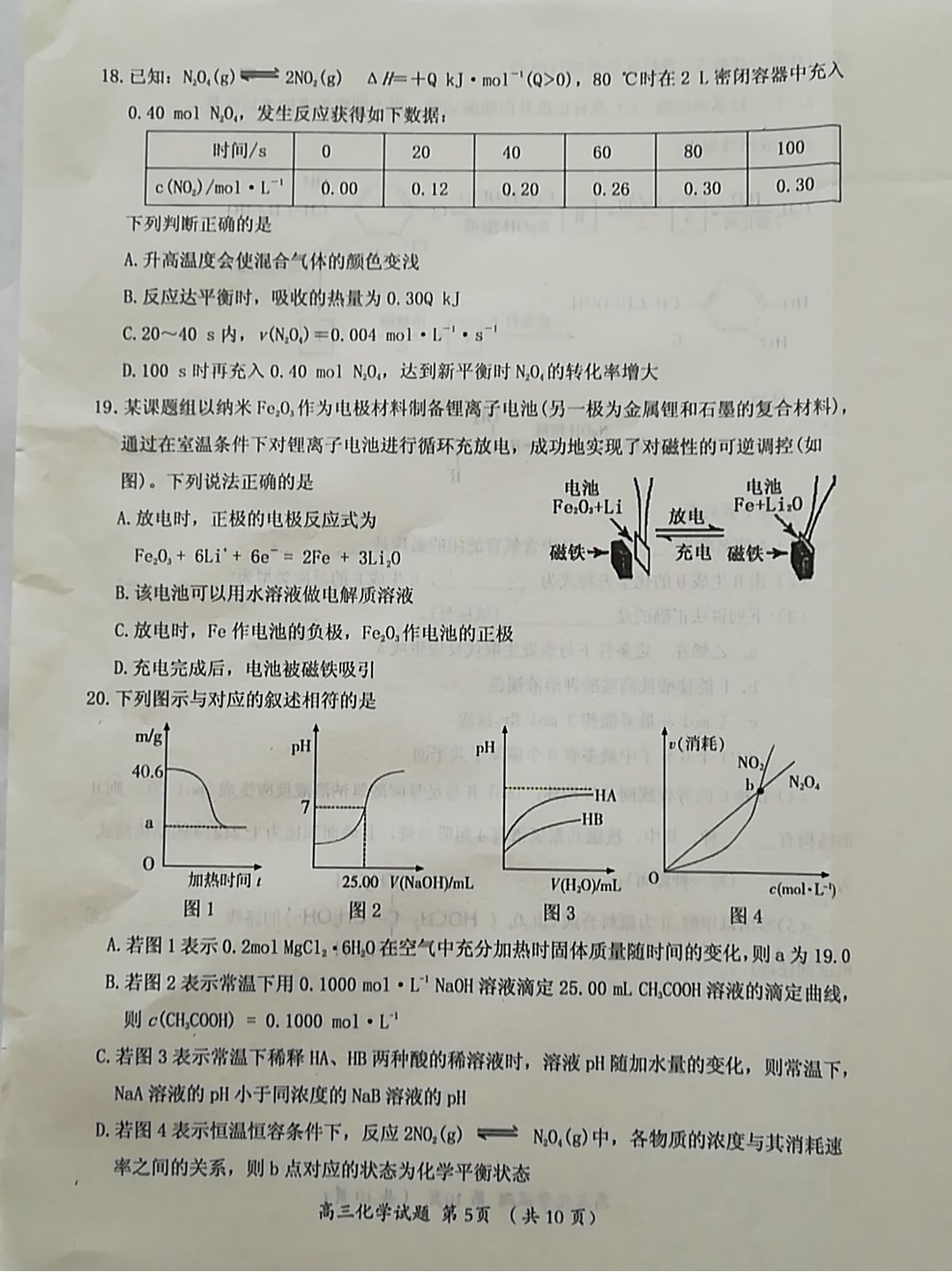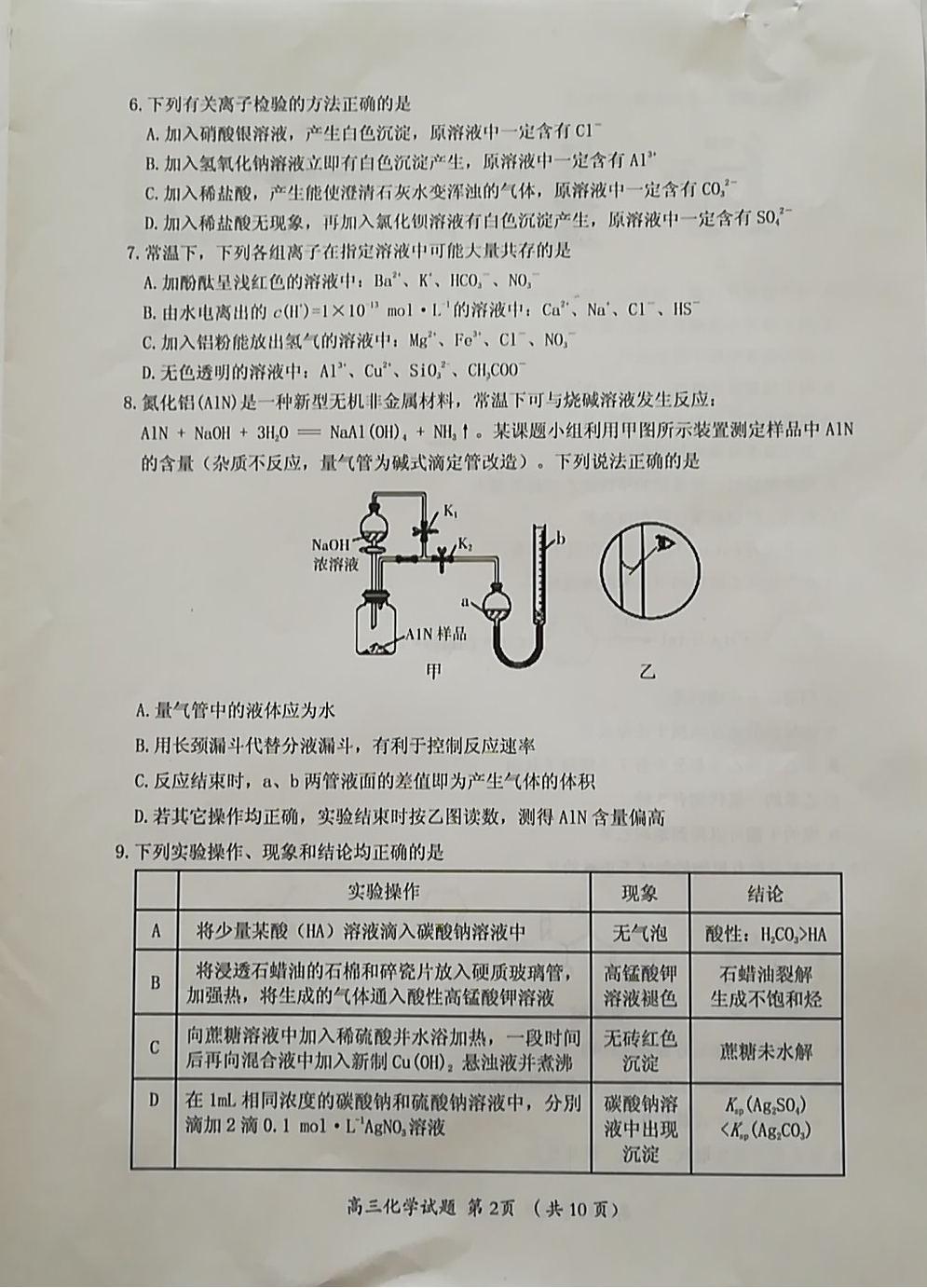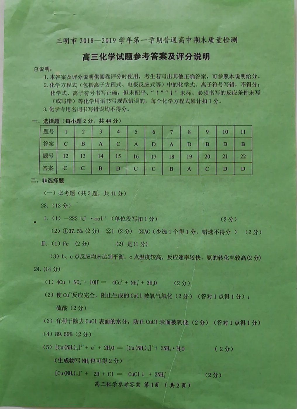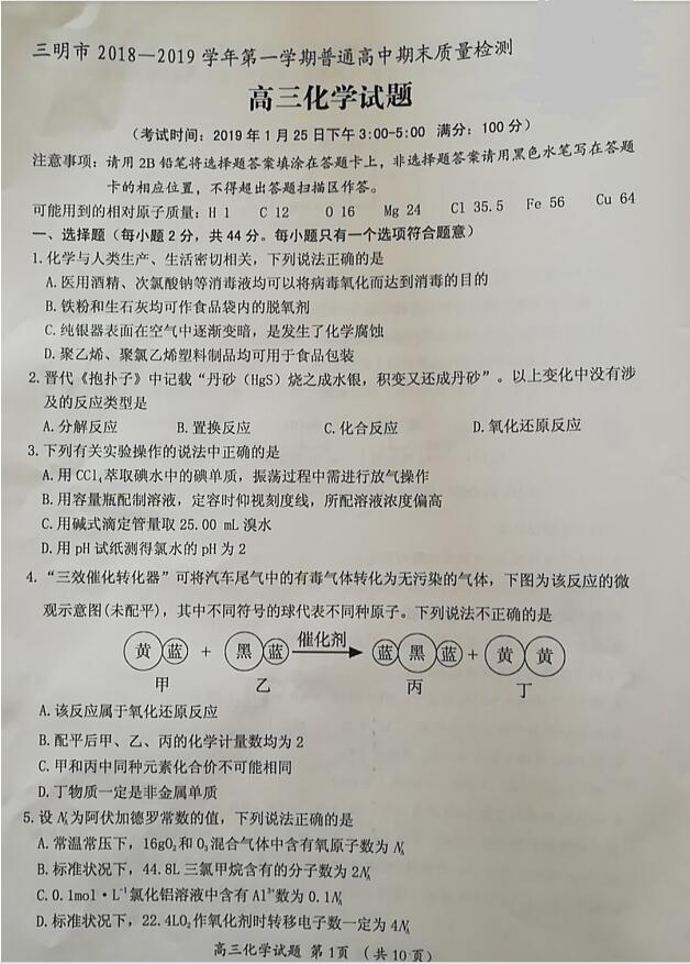 【摘要】福建省三明市2019屆高三年上學期期末質量檢測化學試題及答案,考生們可以針對題目來更好的復習哦,更多高考信息可關注閩州教育高考資訊專欄。