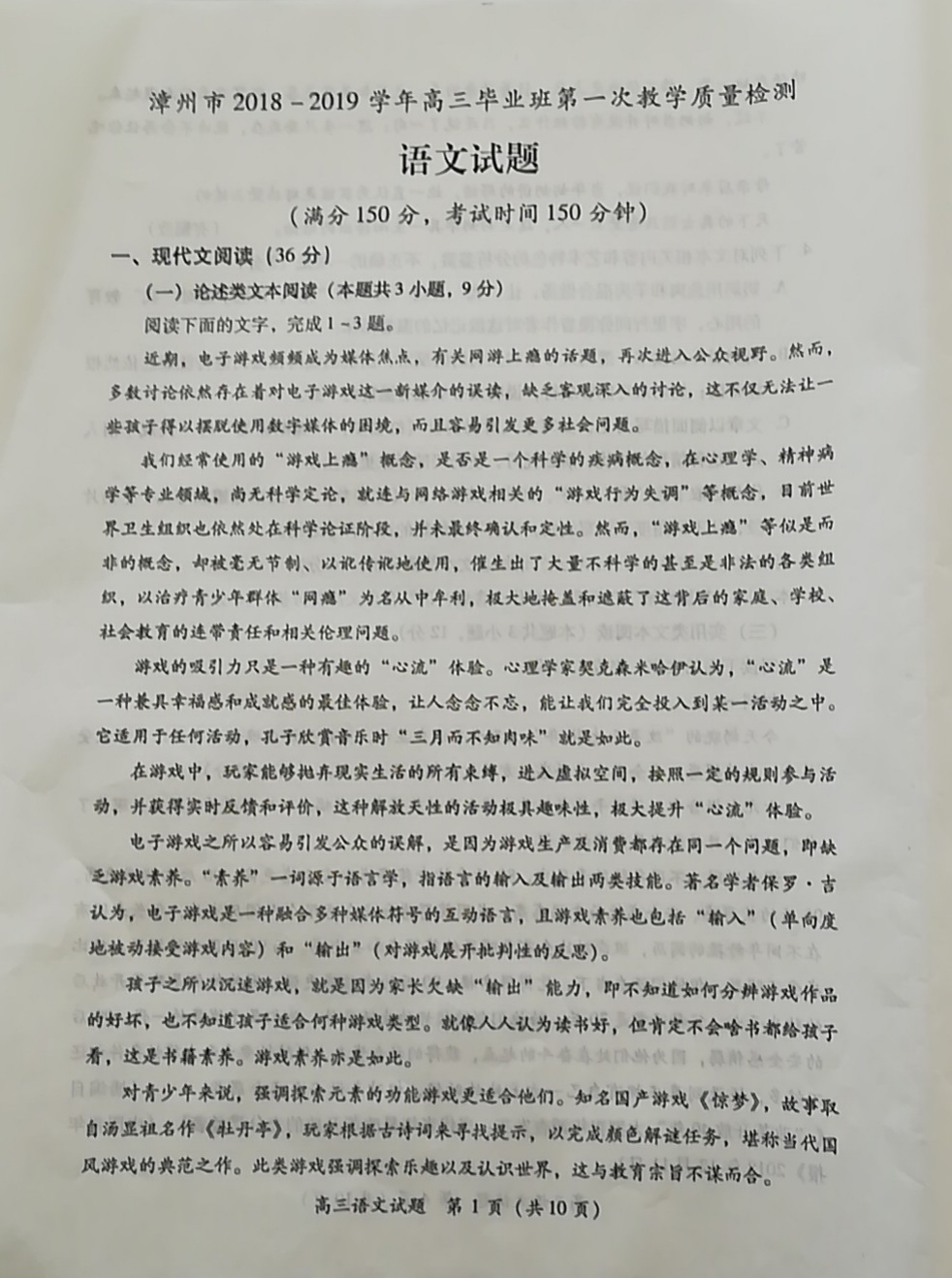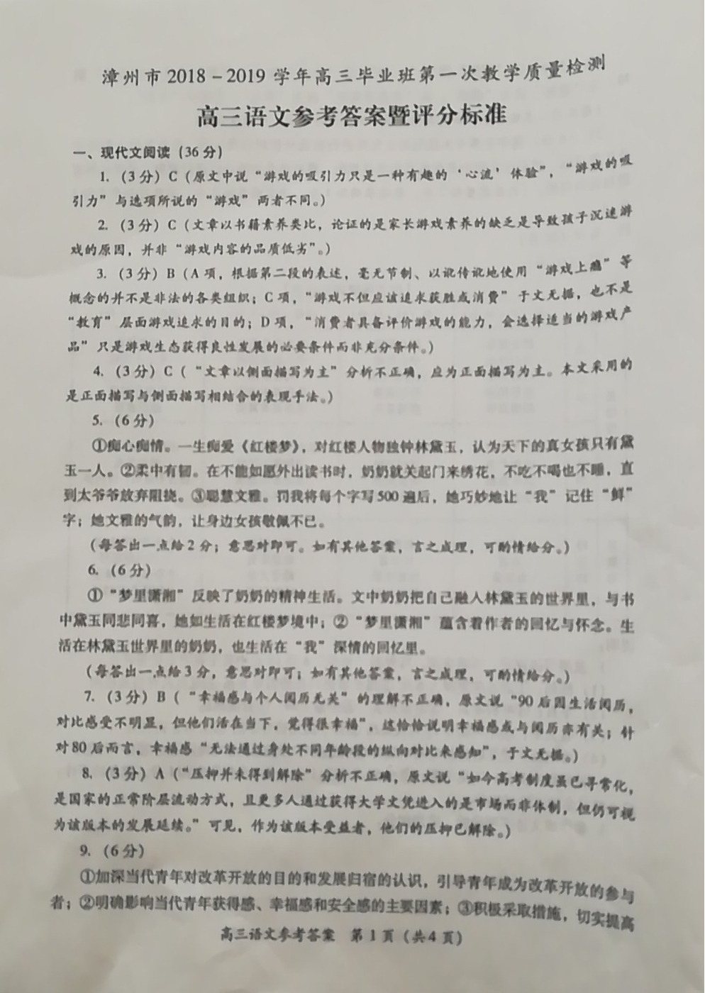 【摘要】福建省漳州市2019屆高三年畢業(yè)班第一次教學(xué)質(zhì)量檢測語文試題及答案!更多高考信息可關(guān)注閩州教育高考資訊專欄。