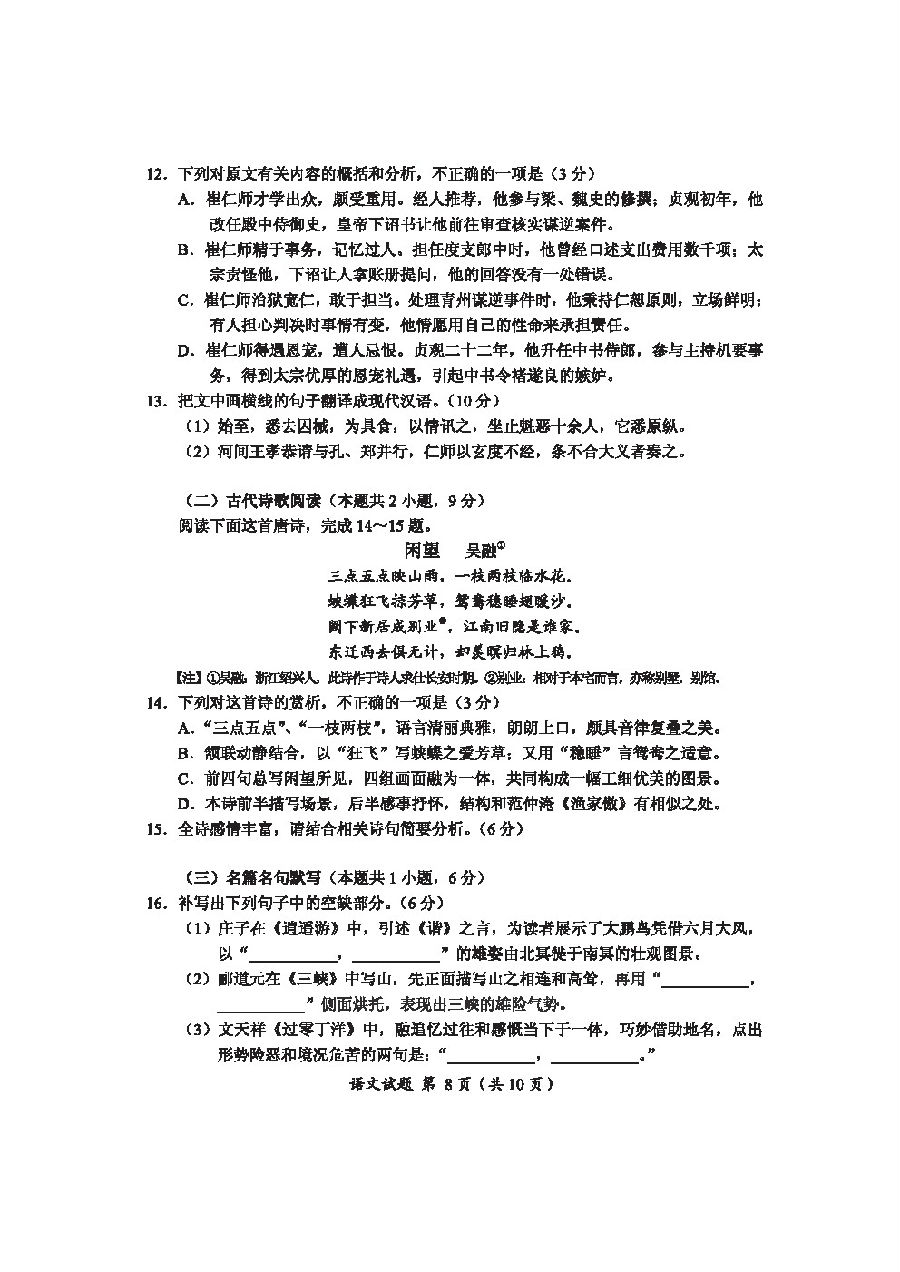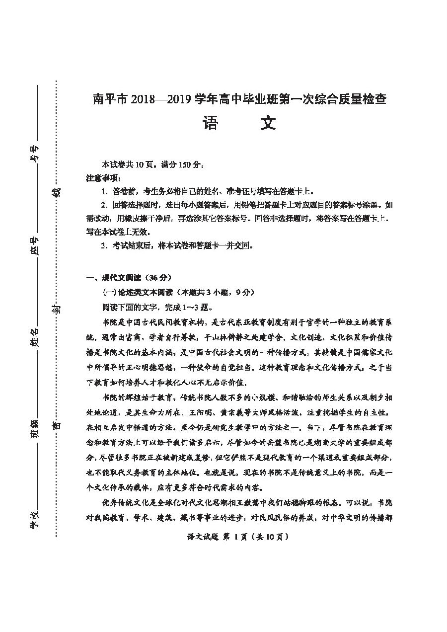 【摘要】福建省南平市2019學年高中畢業(yè)班第一次綜合質(zhì)量檢查語文試題及答案!更多高考信息可關(guān)注閩州教育高考資訊專欄。