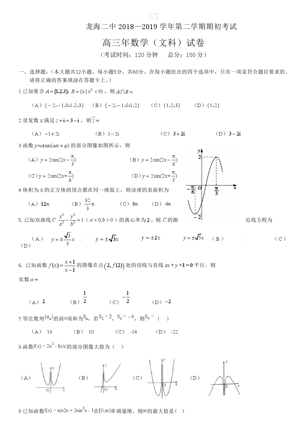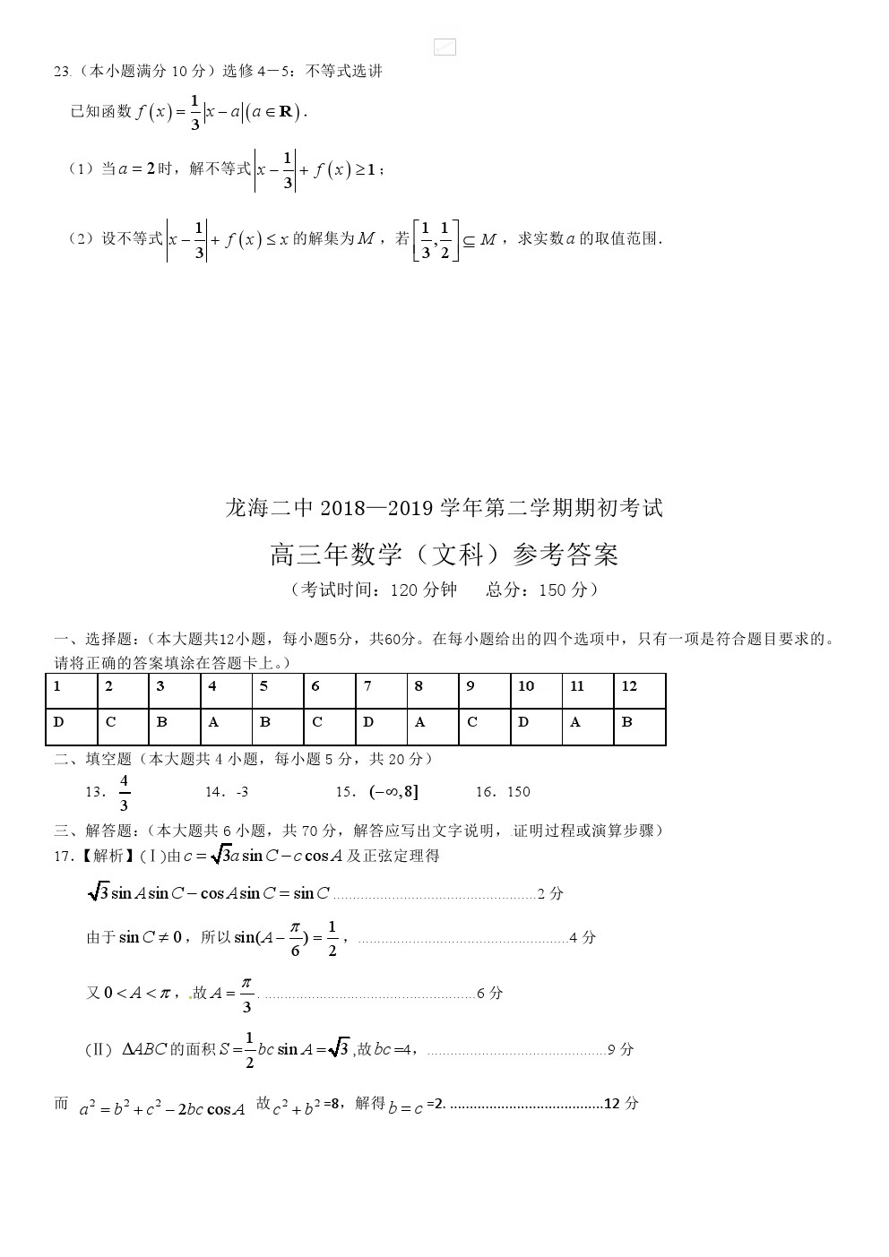 【摘要】福建省龍海市第二中學(xué)2019屆高三下學(xué)期期初考試數(shù)學(xué)(文)試題,更多高考信息可關(guān)注閩州教育高考資訊專欄。