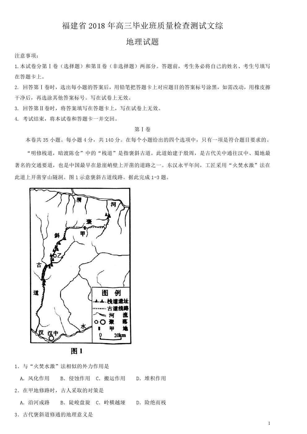 【摘要】福建省2018年高三畢業(yè)班質(zhì)量檢查測試文綜:地理試題及答案,更多高考信息可關(guān)注閩州教育高考資訊專欄。