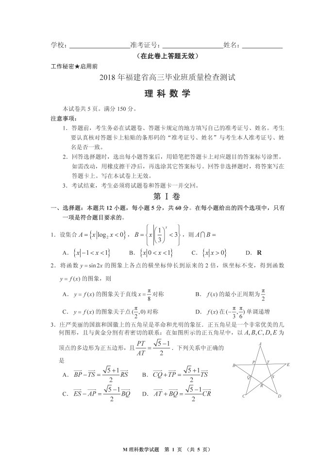 【摘要】福建省2018年高三畢業(yè)班質(zhì)量檢查測(cè)試?yán)砜茢?shù)學(xué)試題及答案!更多高考信息可關(guān)注閩州教育高考資訊專欄。