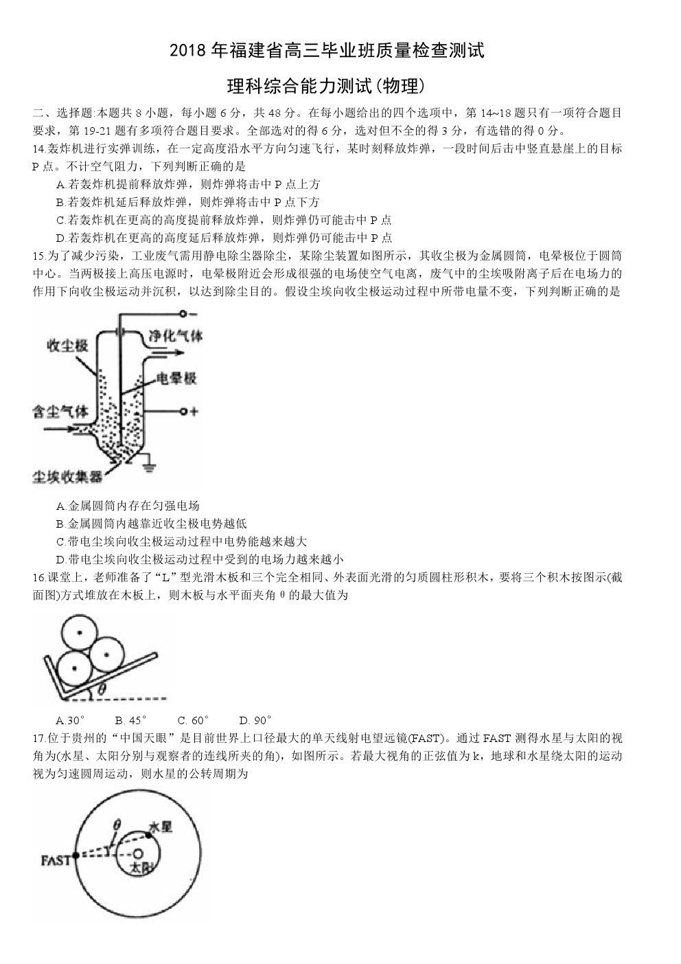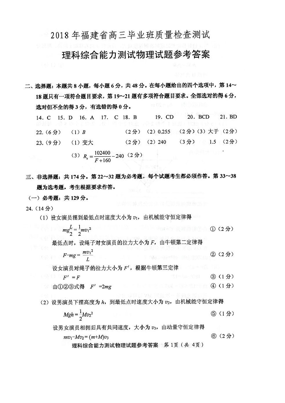 【摘要】福建省2018年高三畢業(yè)班質(zhì)量檢查測試?yán)砭C:物理試卷及答案!更多高考信息可關(guān)注閩州教育高考資訊專欄。